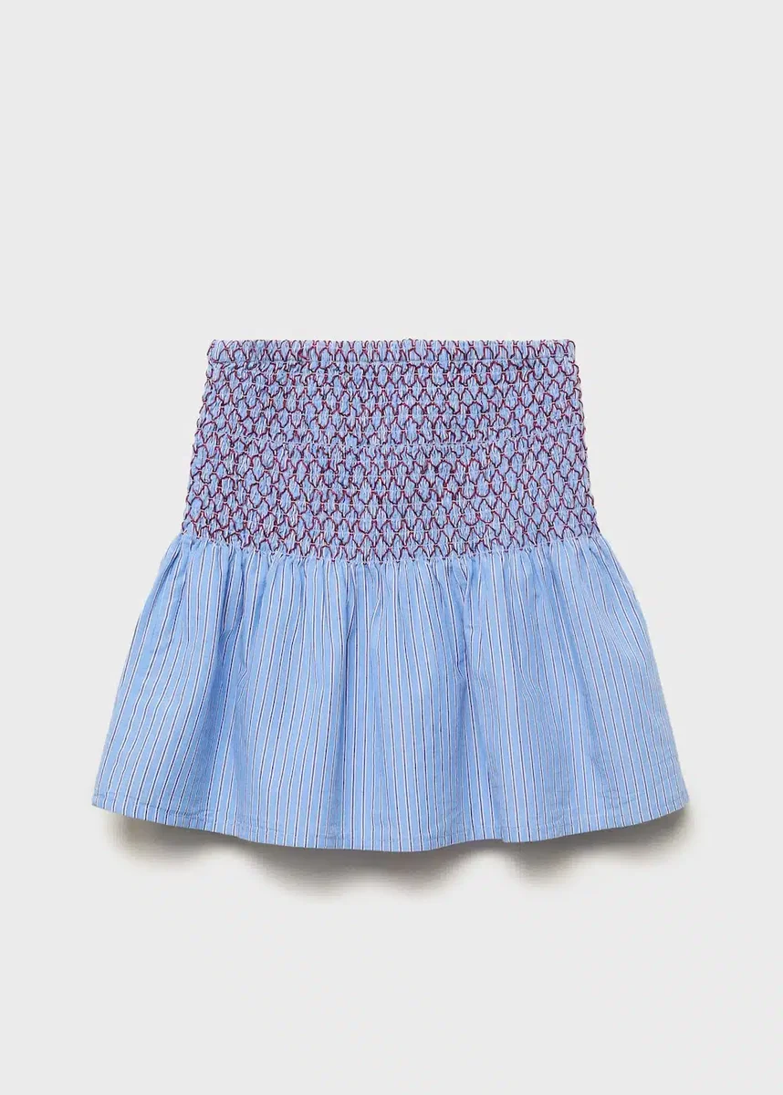 Realizzata in tessuto di cotone, questa gonna presenta un design a righe senza chiusura. La sua silhouette ad A è completata da una cintura elastica a nido d’ape e da dettagli ricamati, ideali per un look total look.