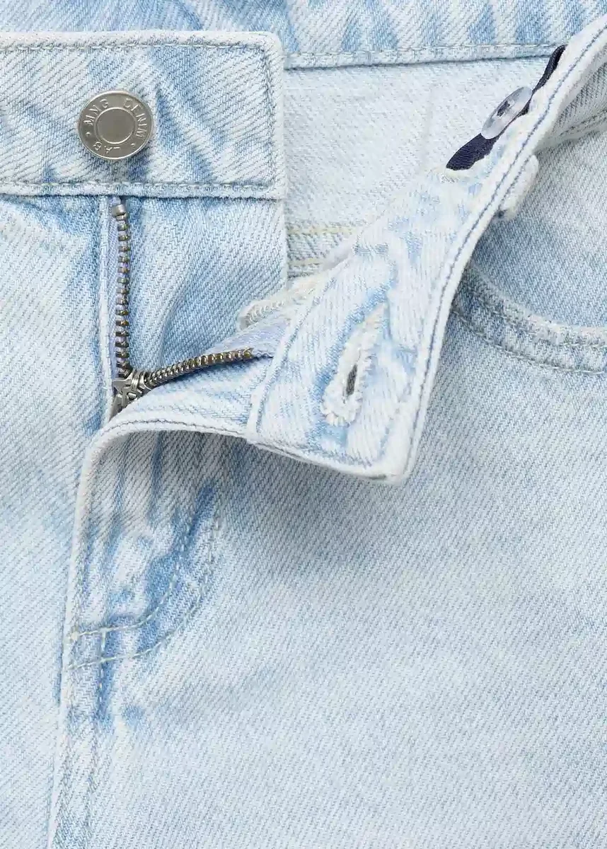 Tessuto 100% cotone. Tessuto denim di cotone. Modello lungo. Passanti in vita. Chiusura con bottone e zip. Tasca portamonete. Due tasche laterali. Tasche applicate sul retro. Orlo sfrangiato. Orlo arrotolato