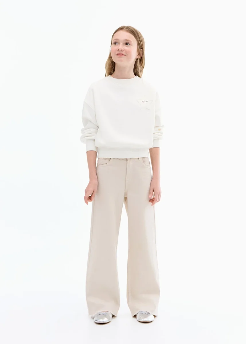 Tessuto 100% cotone. Tessuto denim di cotone. Design a gamba larga. Vita regolare. Design lungo. Passanti per cintura. Tasca portamonete. Due tasche laterali. Due tasche applicate sul retro. Orlo sfrangiato. Composizione: 100% cotone Lavaggio in lavatrice max 30°C / 85°F Non candeggiare Stirare max 110°C / 230°F Non lavare a secco Non asciugare in asciugatrice Tessuto 100% cotone. Tessuto denim di cotone. Modello a gamba larga. Vita regolare. Modello lungo. Passanti per cintura. Tasca portamonete. Due tasche laterali. Due tasche applicate sul retro. Orlo sfrangiato