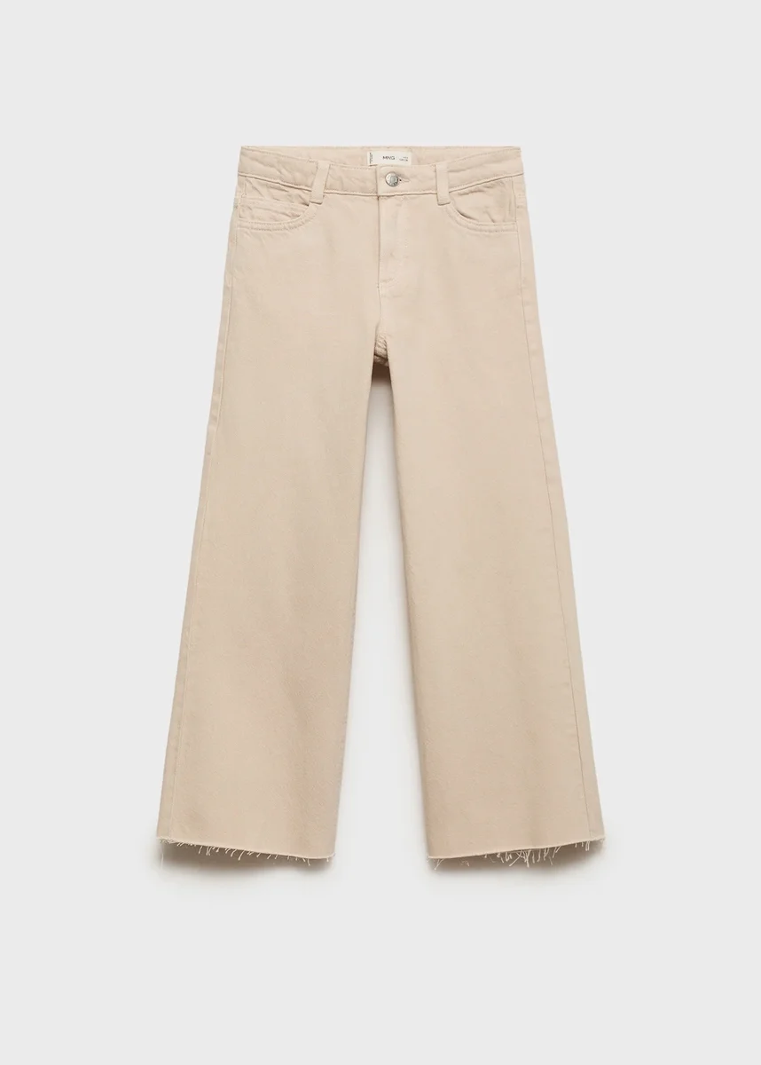 Tessuto 100% cotone. Tessuto denim di cotone. Design a gamba larga. Vita regolare. Design lungo. Passanti per cintura. Tasca portamonete. Due tasche laterali. Due tasche applicate sul retro. Orlo sfrangiato
