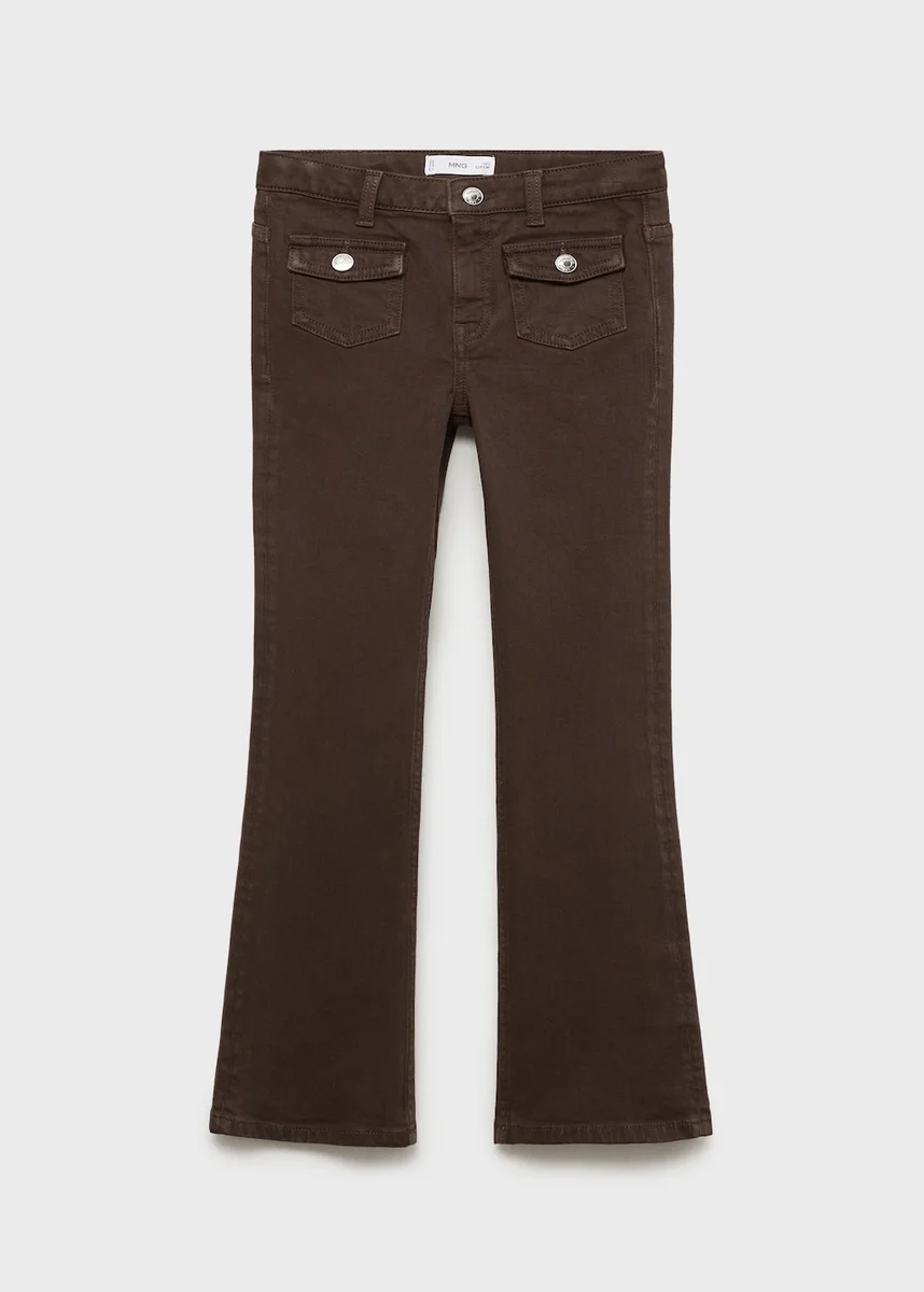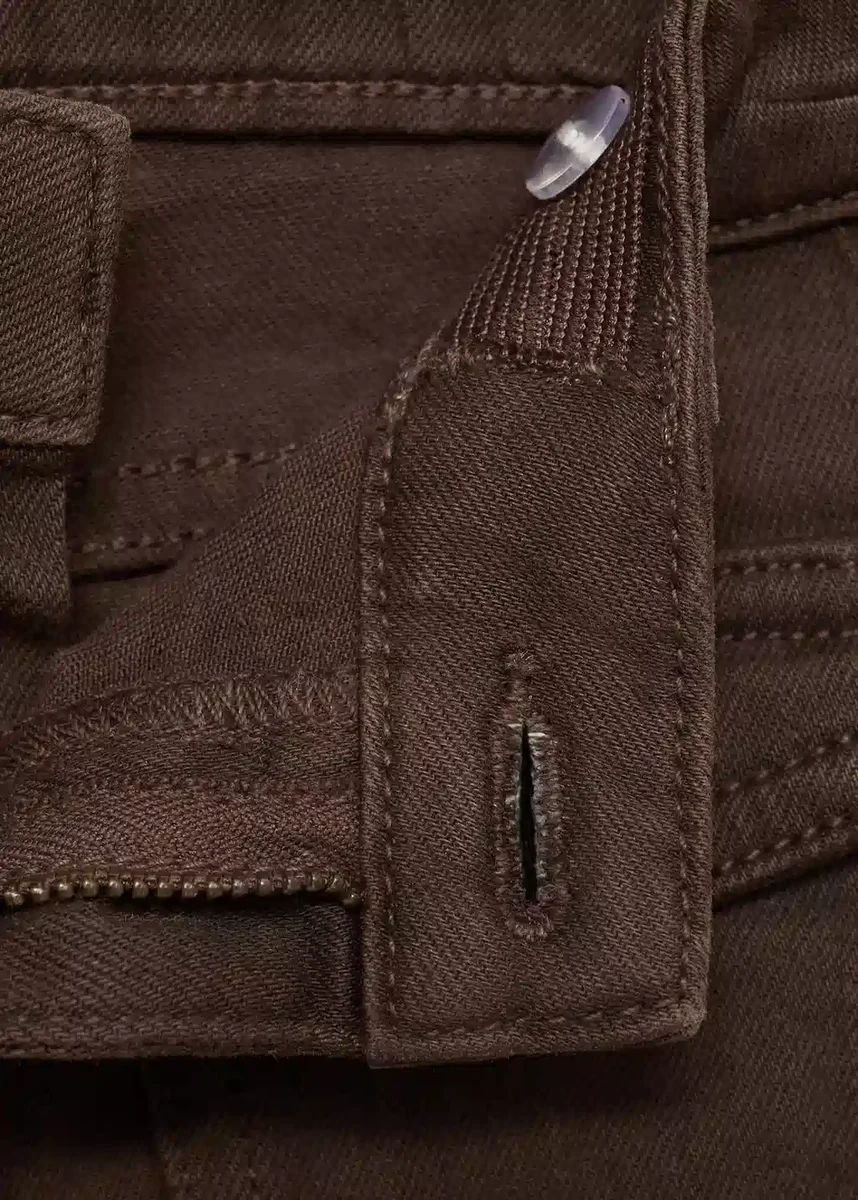 Tessuto in cotone. Tessuto elasticizzato. Modello lungo. Modello svasato. Passanti per cintura. Chiusura con bottone e cerniera. Due tasche applicate con patta sul davanti. Due tasche applicate sul retro
