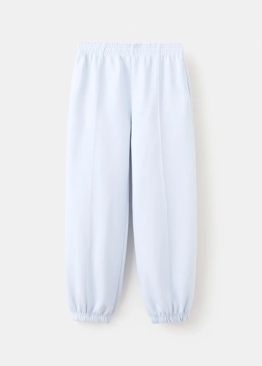 Tessuto 100% cotone. Modello lungo. Vita elasticizzata. Due tasche laterali. Etichetta decorativa. Lunghezza standard. Cintura regolabile/elastico. Struttura piatta media. Silhouette jogger.
