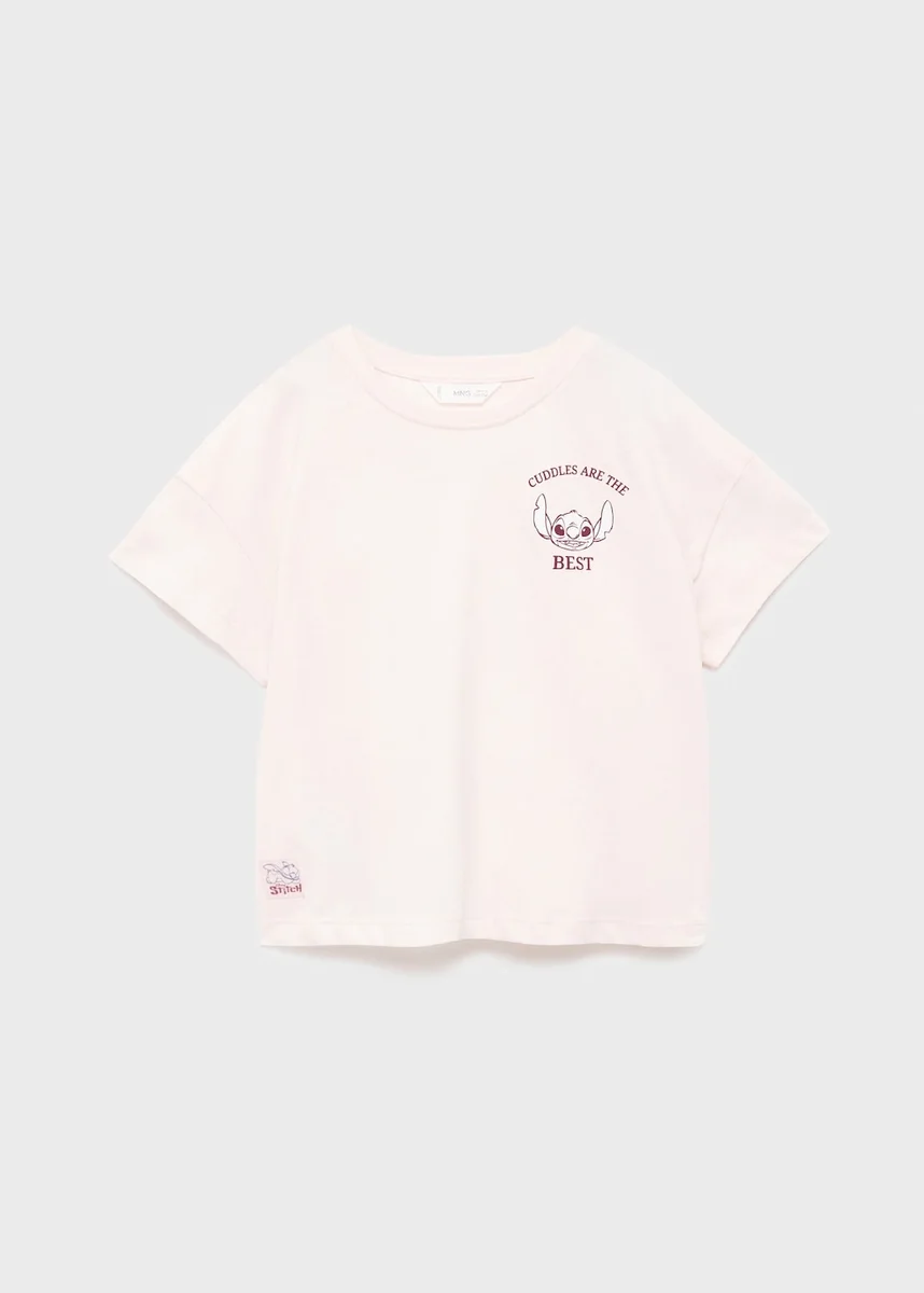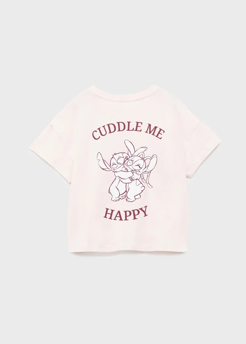 Lilo e Stitch. Tessuto 100% cotone. Modello dritto. Disegno stampato. Girocollo. Maniche corte. Disegno stampato sul davanti. Disegno stampato sul retro. Licenze.