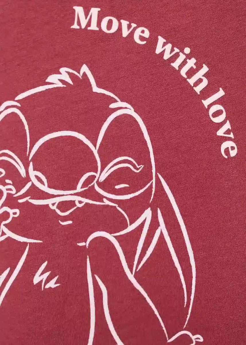 Lilo e Stitch. Tessuto 100% cotone. Modello dritto. Disegno stampato. Girocollo. Maniche corte. Immagine stampata sul davanti. Disegno stampato sul retro. Licenze.