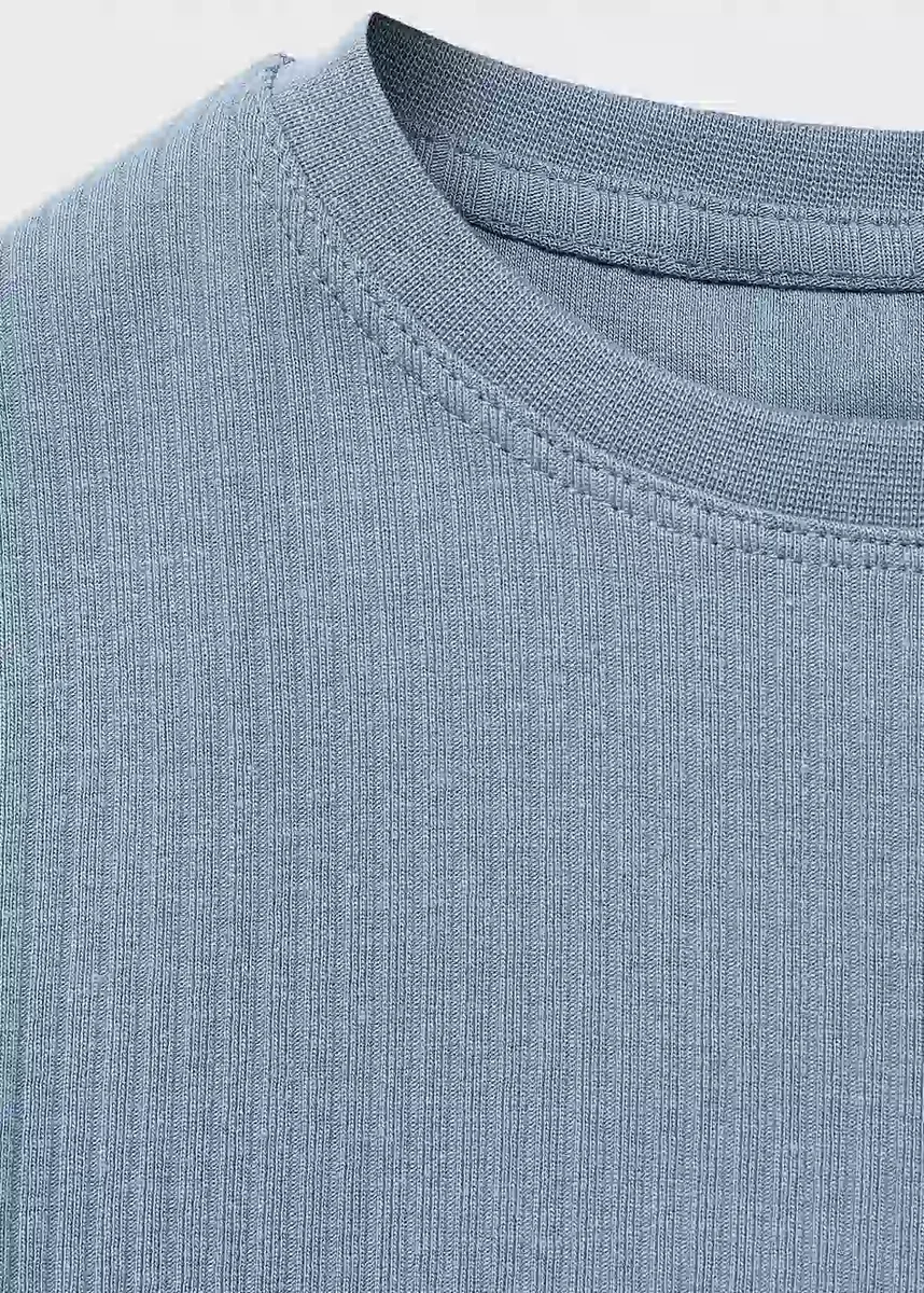 Tessuto in cotone. Tessuto elasticizzato. Design a costine. Design dritto. Girocollo. Maniche corte.