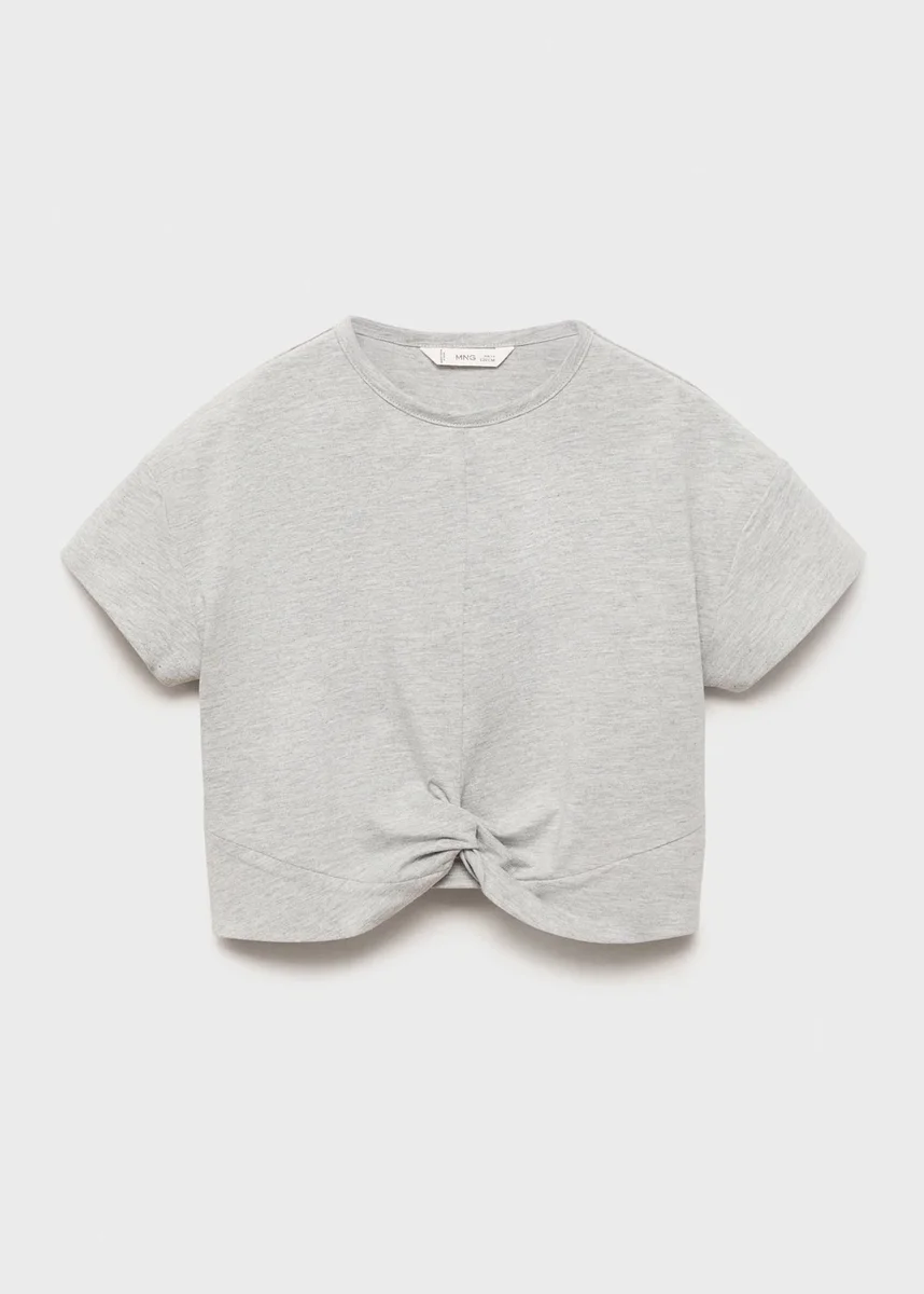Tessuto 100% cotone. Modello corto. Design semplice. Nodo decorativo. Girocollo. Maniche corte.