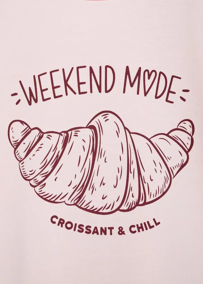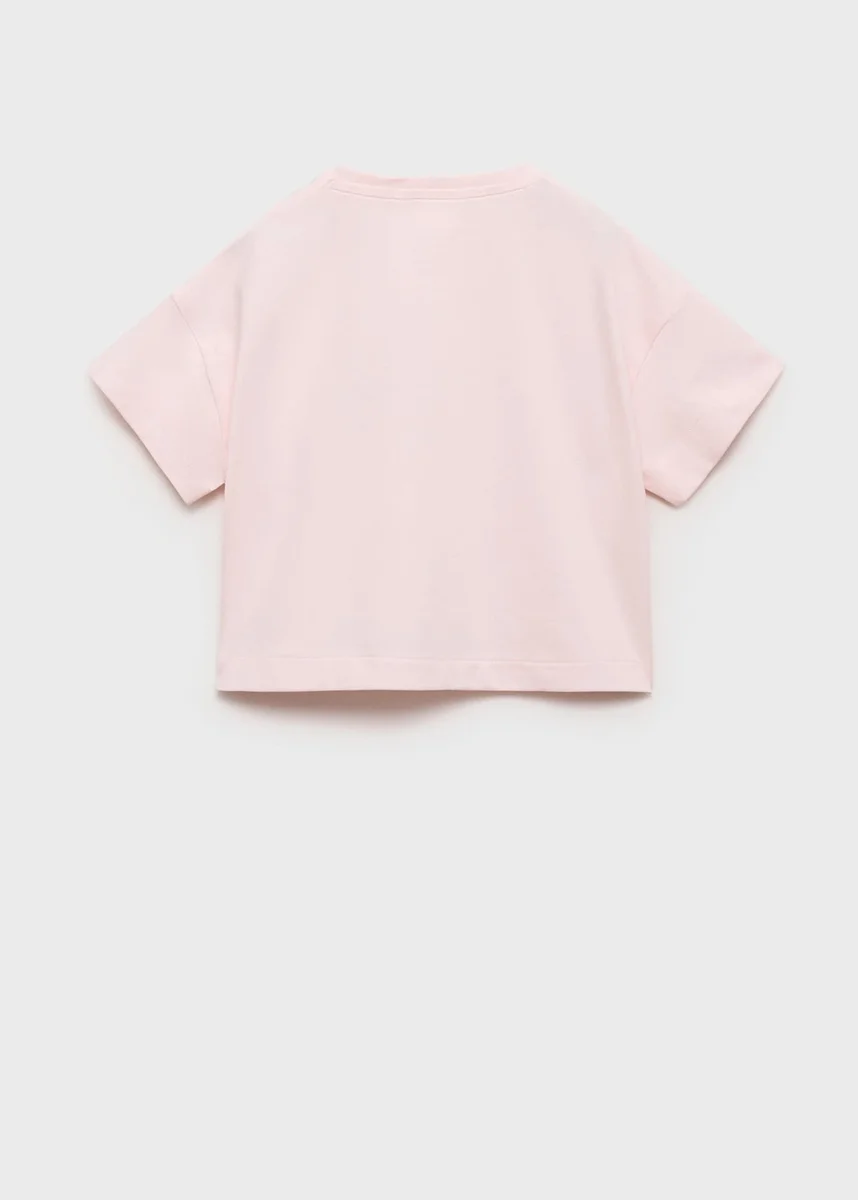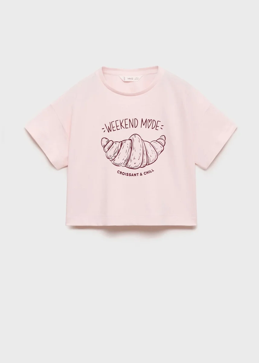 Tessuto in cotone. Disegno stampato. Modello corto. Girocollo. Maniche corte. Grafica stampata sul petto.