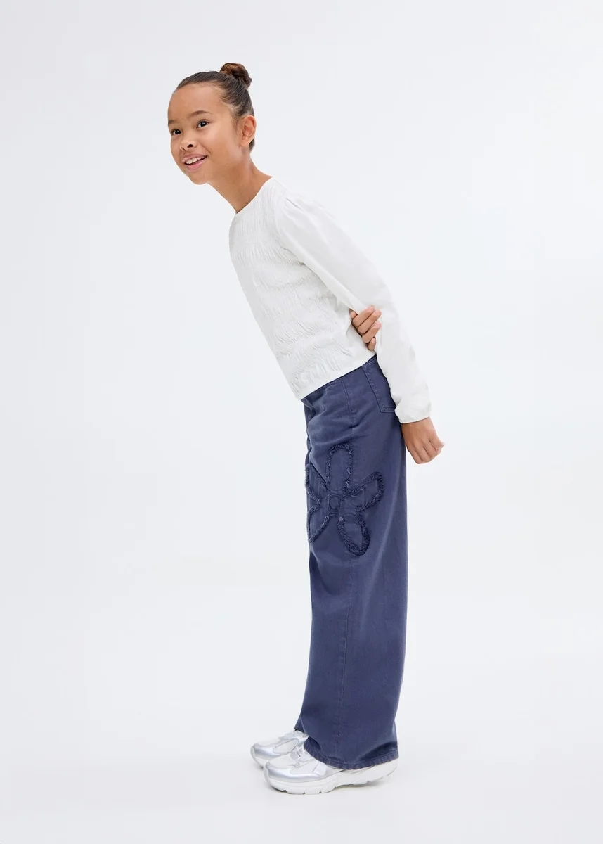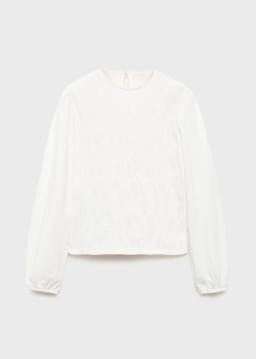 Tessuto in cotone. Tessuto elasticizzato. Modello dritto. Corpetto arricciato. Motivo a nido d’ape. Girocollo. Maniche lunghe. Chiusura con bottoni sul retro. Polsini elasticizzati. Ritorno a scuola.