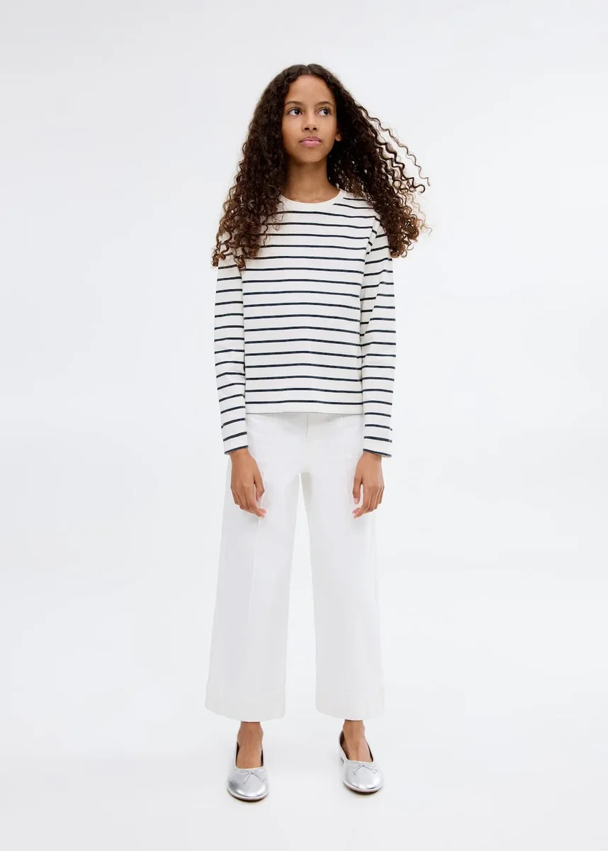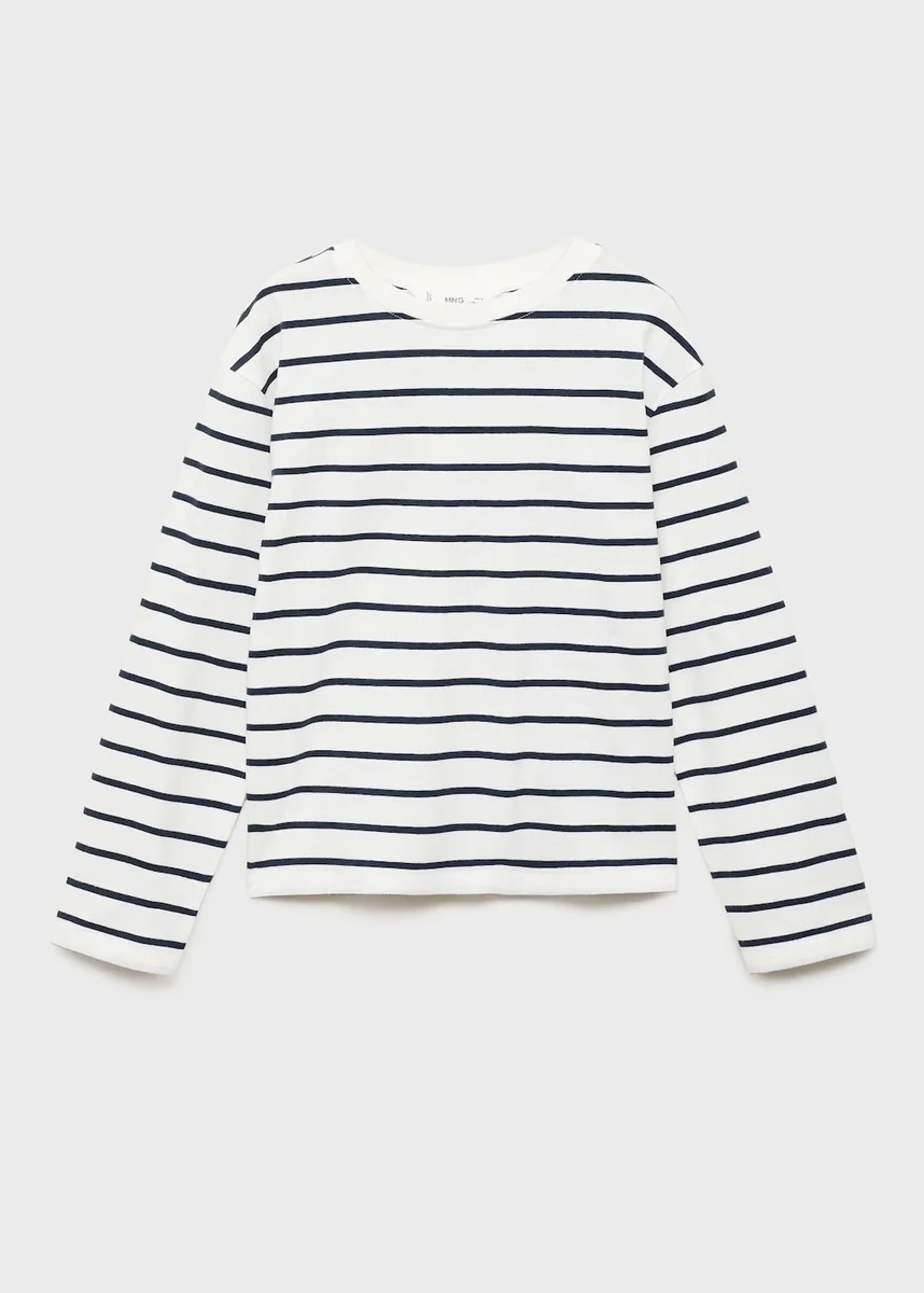 Tessuto 100% cotone. Design dritto. Design a righe. Girocollo. Maniche lunghe.