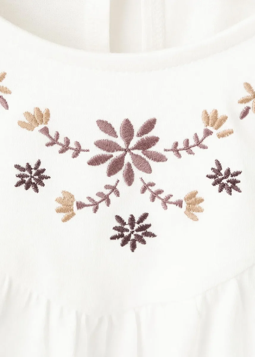 Tessuto 100% cotone. Design dritto. Dettaglio arricciato sul petto. Girocollo. Maniche lunghe. Polsini arricciati.