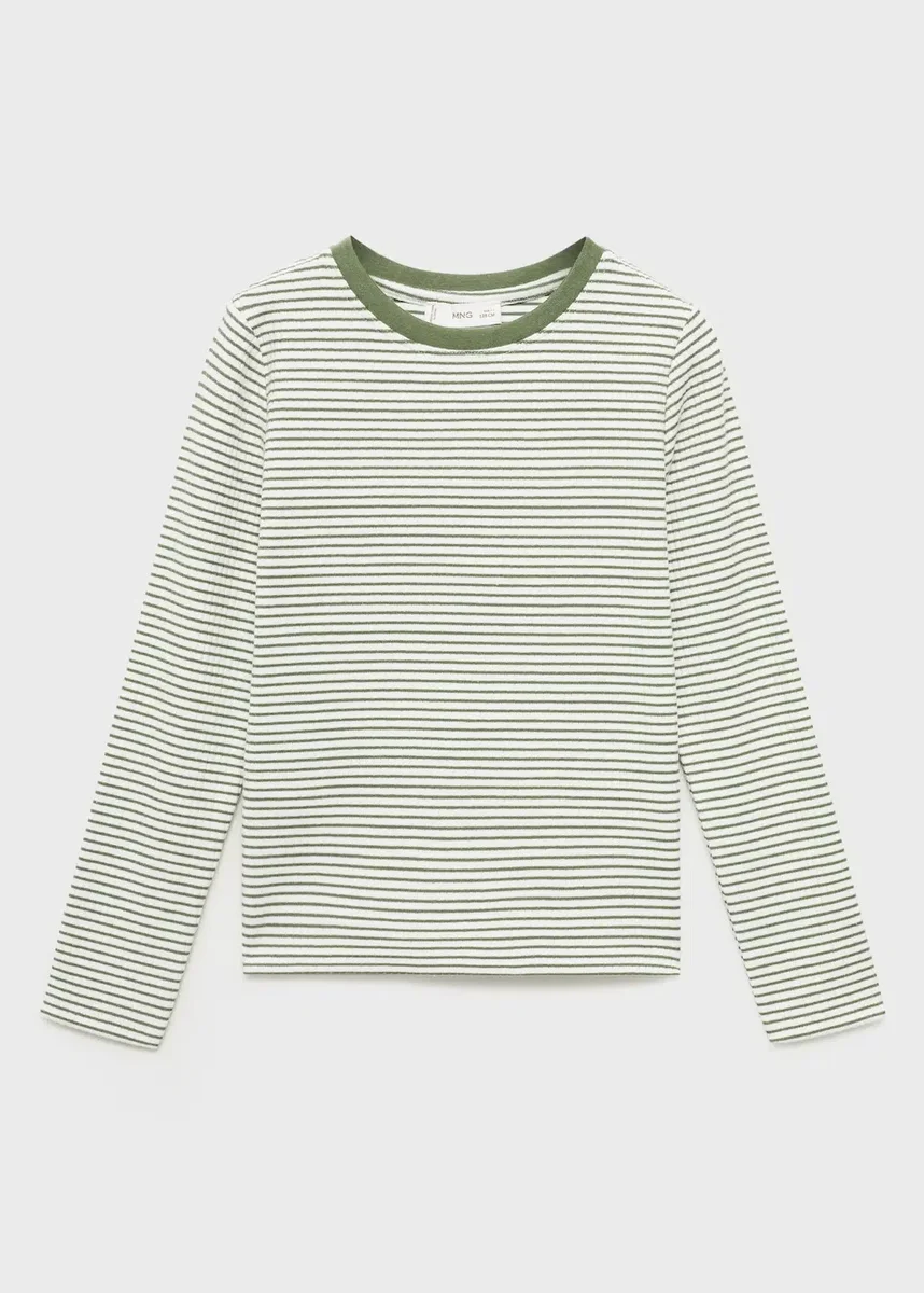 Tessuto in cotone. Tessuto elasticizzato. Design dritto. Design a righe. Girocollo a contrasto. Maniche lunghe. Ritorno a scuola.