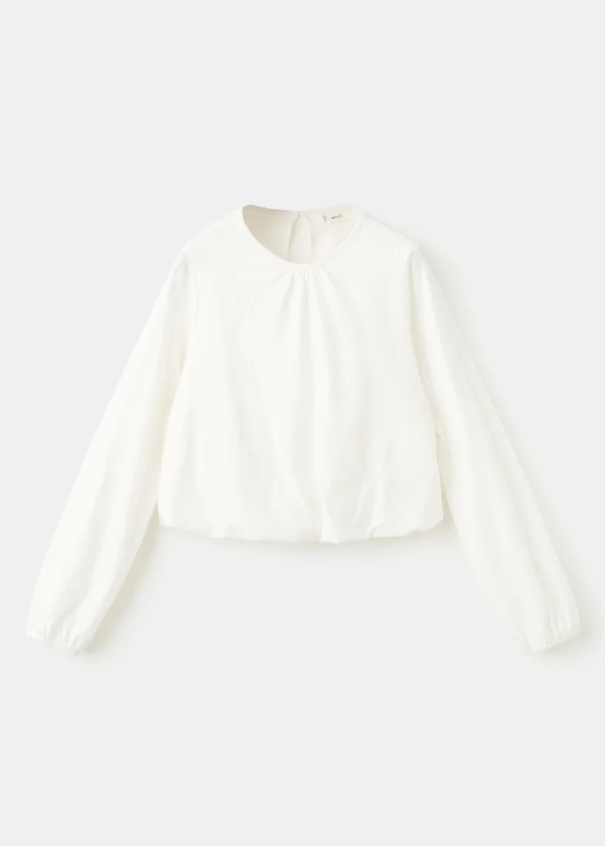 Tessuto 100% cotone. Design dritto. Girocollo con chiusura a bottoni. Dettaglio arricciato sul collo. Maniche lunghe con bordi a costine. Orlo a palloncino