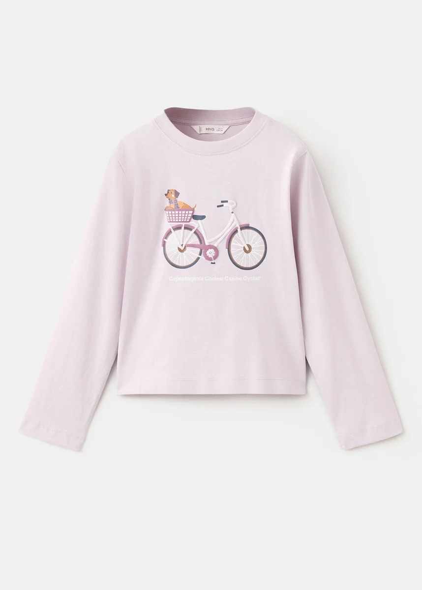 Tessuto 100% cotone. Design dritto. Stampa frontale. Design con cucciolo. Stampa in rilievo. Girocollo. Maniche lunghe.