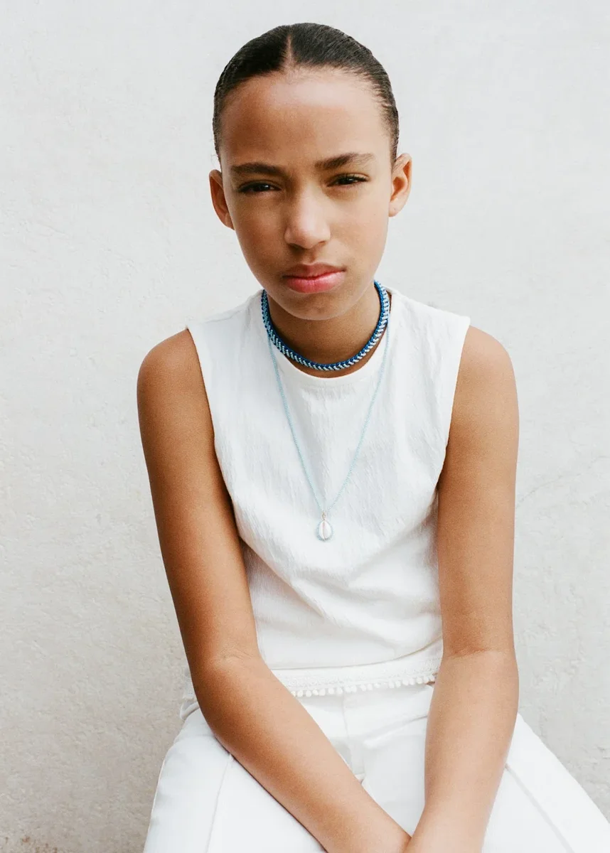 Tessuto in cotone. Tessuto testurizzato. Design dritto. Girocollo. Senza maniche. Ricamo decorativo sull’orlo. Chiusura con bottoni sul retro. Black Friday