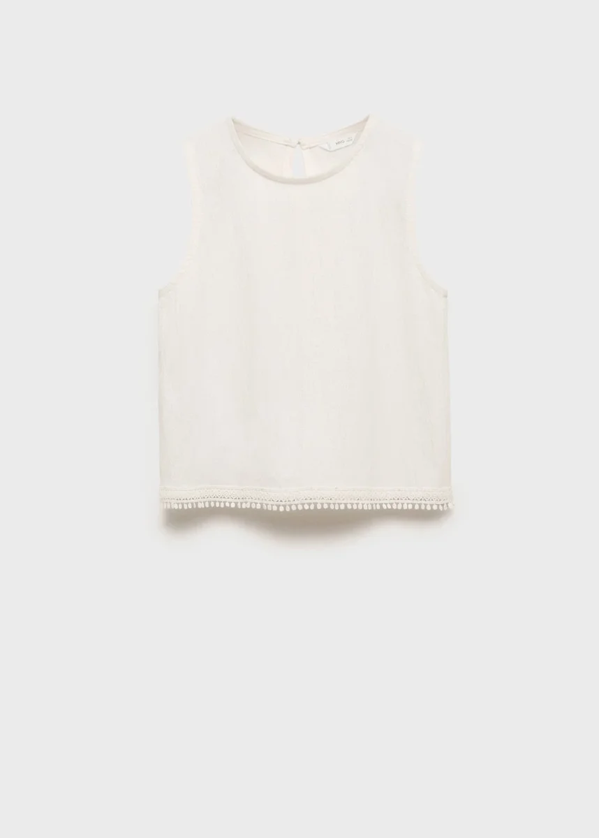 Tessuto in cotone. Tessuto testurizzato. Design dritto. Girocollo. Senza maniche. Ricamo decorativo sull’orlo. Chiusura con bottoni sul retro. Black Friday.
