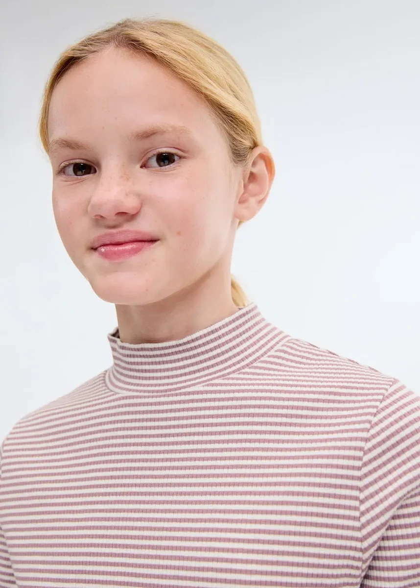 Tessuto in cotone. Tessuto elasticizzato. Design a righe. Design dritto. Collo alto. Orlo smerlato