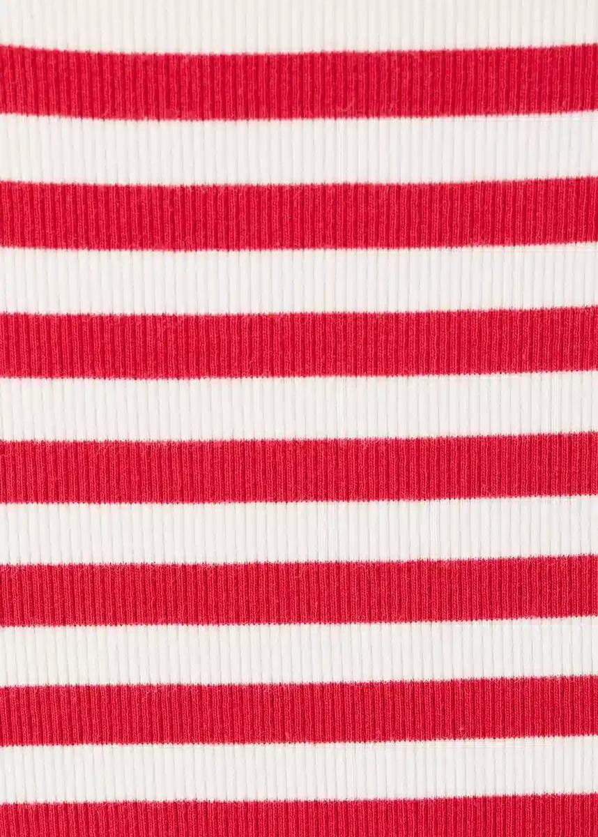 Tessuto in cotone. Maglia a costine. Design a righe. Spalline sottili. Total look.