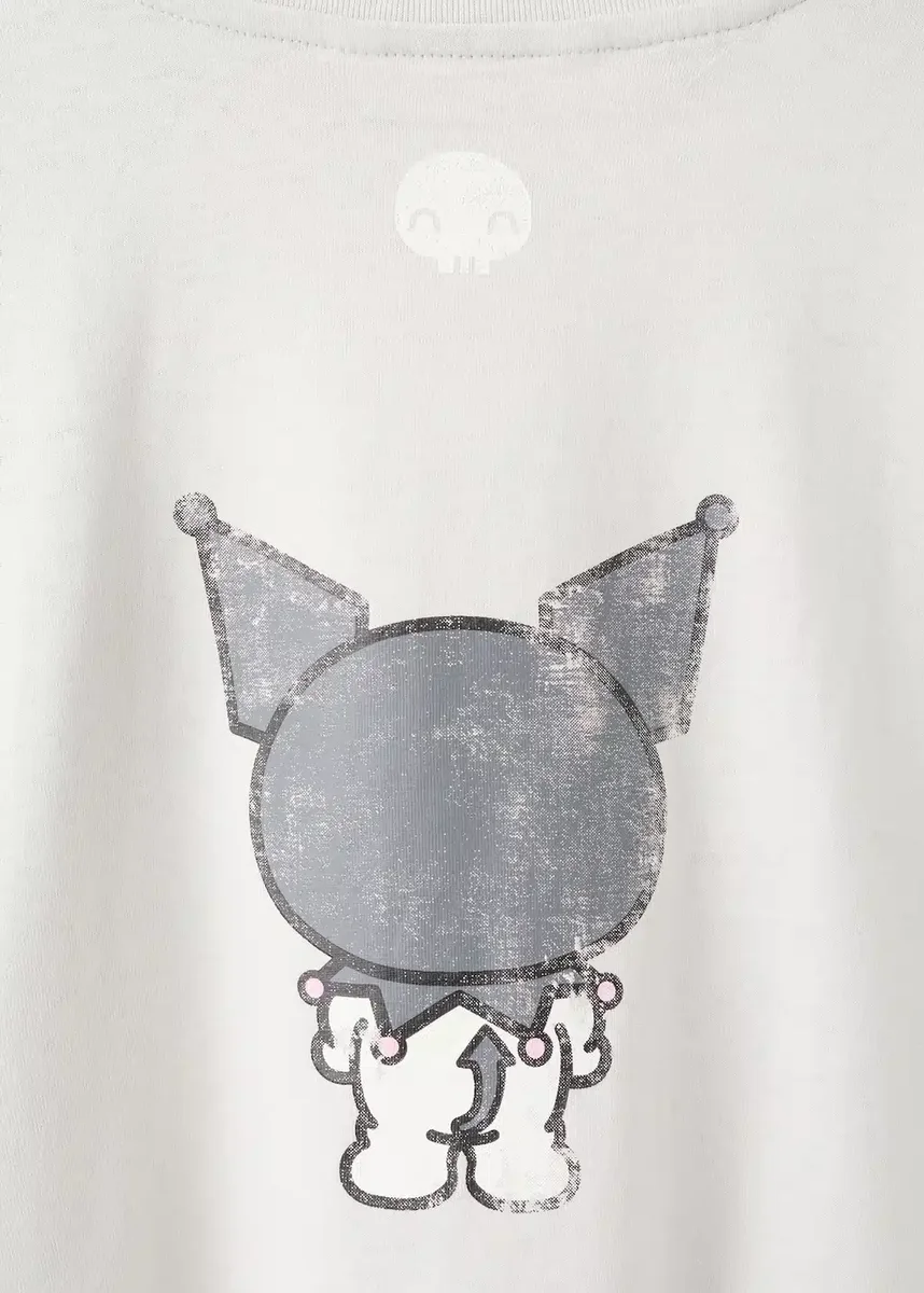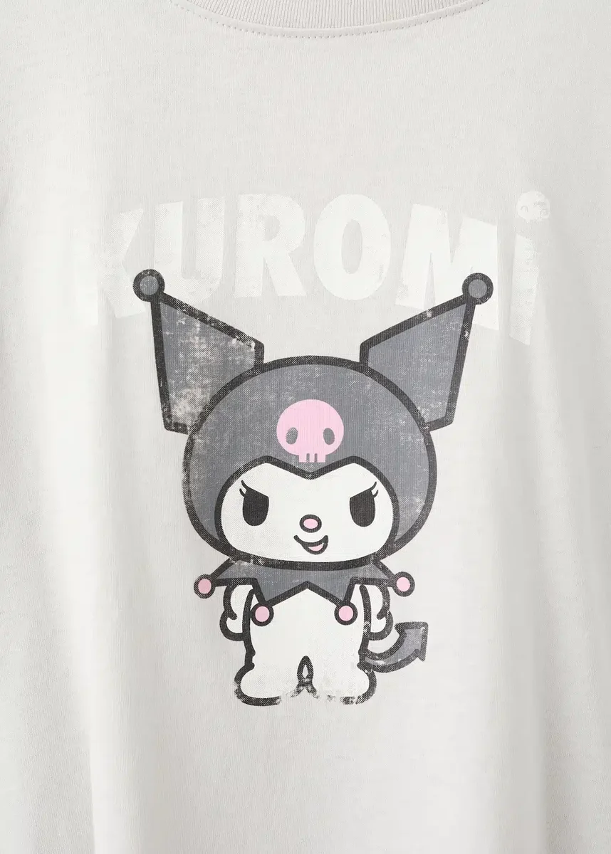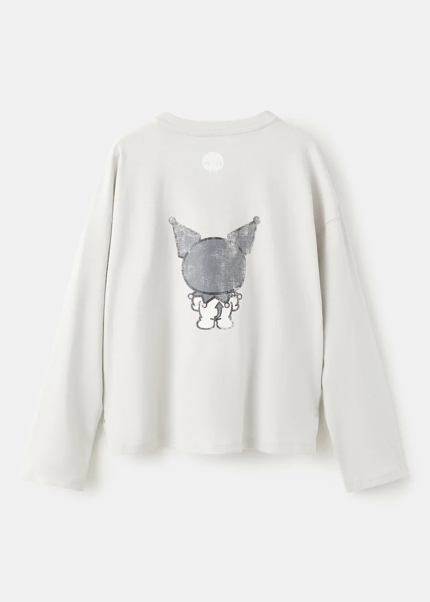 Tessuto 100% cotone. Disegno stampato. Stampa Kuromi. Girocollo. Maniche lunghe. Licenze.