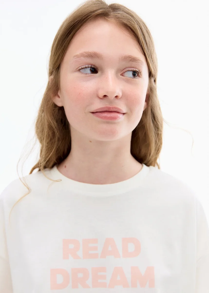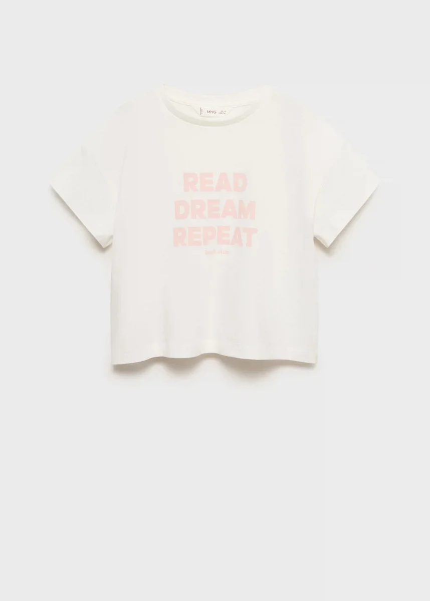 Tessuto 100% cotone. Modello dritto. Modello corto. Stampa sul davanti. Messaggio stampato. Girocollo. Maniche corte.