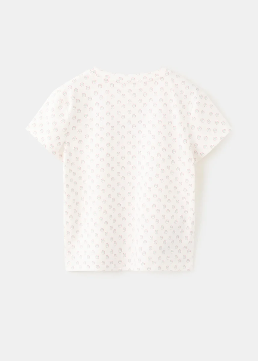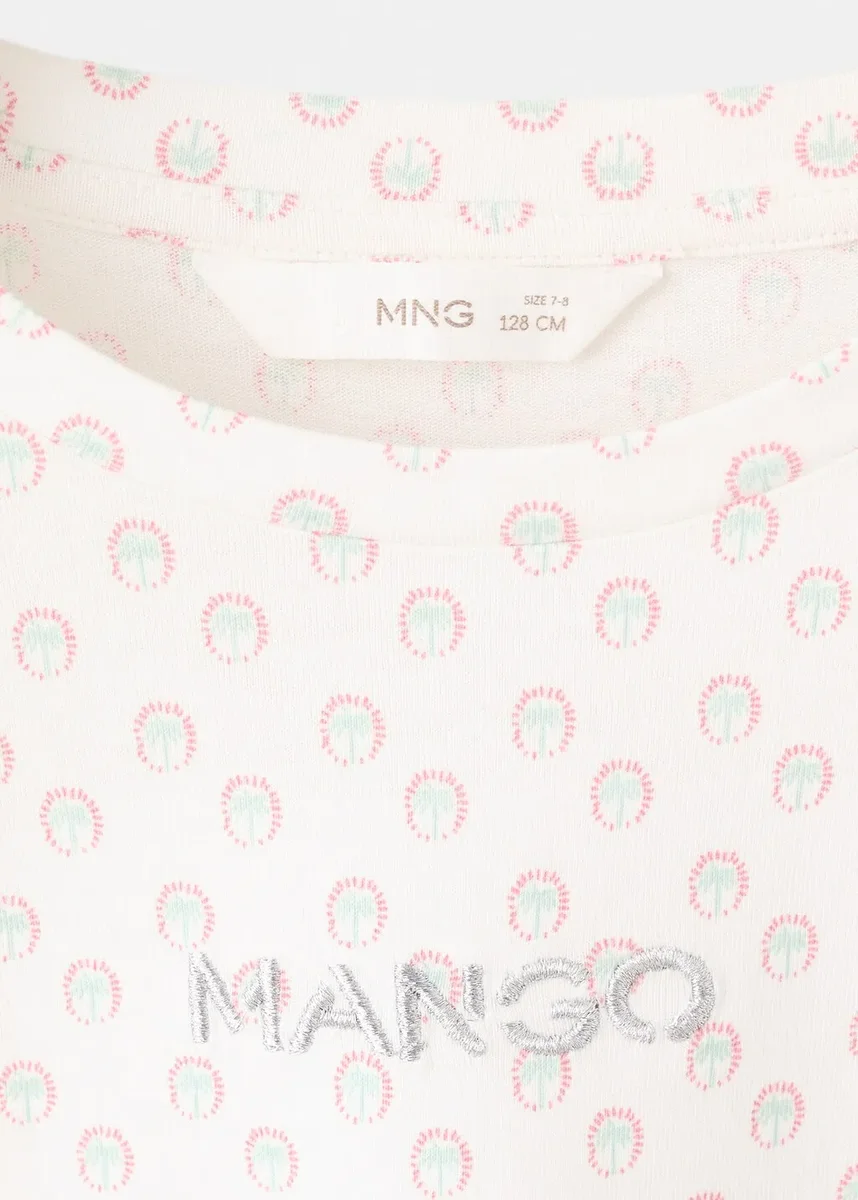 Tessuto 100% cotone. Design stampato. Stampa con conchiglie. Dettagli ricamati. Girocollo. Maniche corte.