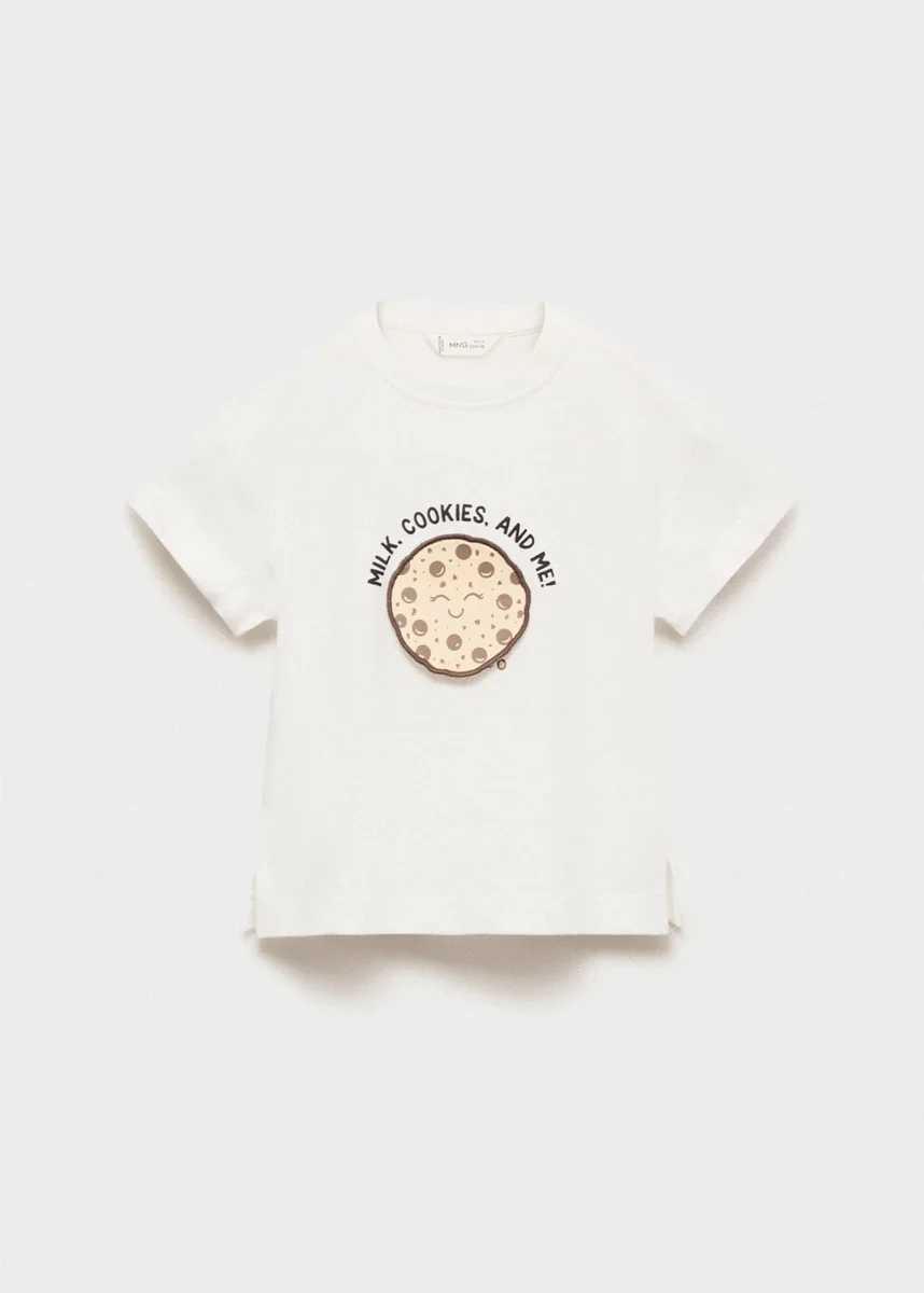 Tessuto 100% cotone. Modello dritto. Disegno stampato. Girocollo. Maniche corte. Dettagli ricamati. Stampa sul davanti. Black Friday.