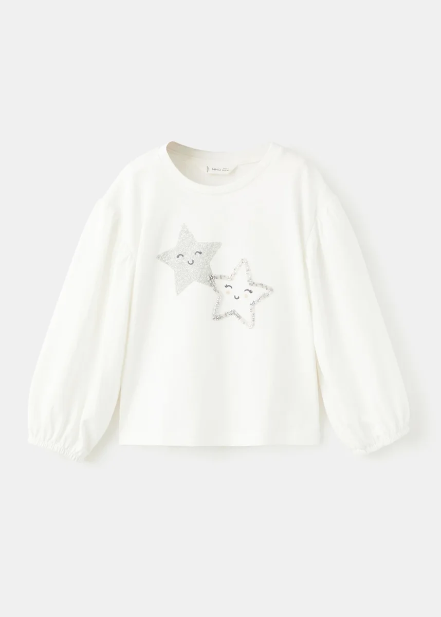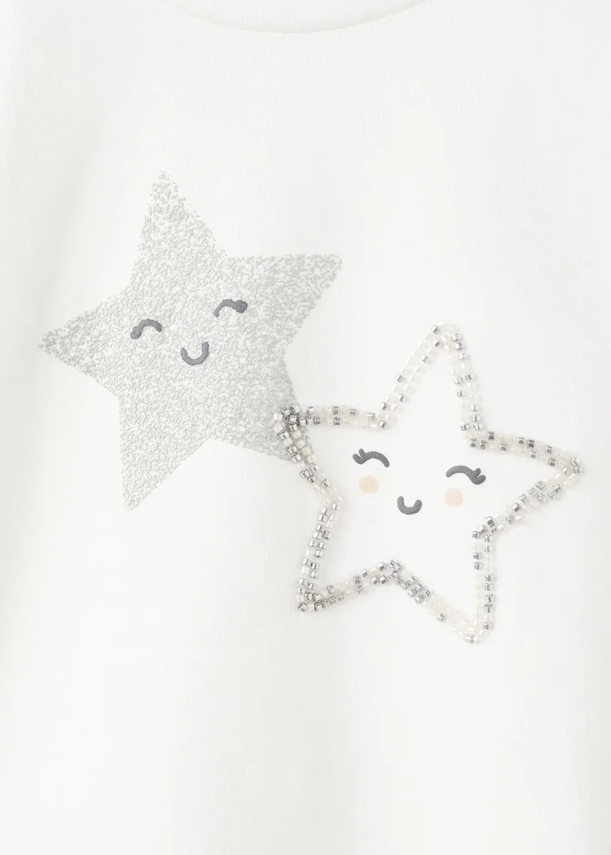 Realizzato in tessuto 100% cotone, questo capo presenta un design dritto con ricami e stampe a stelle. Ha una scollatura rotonda e maniche lunghe con polsini elasticizzati. Fa parte della collezione party ed eventi, nonché della collezione natalizia