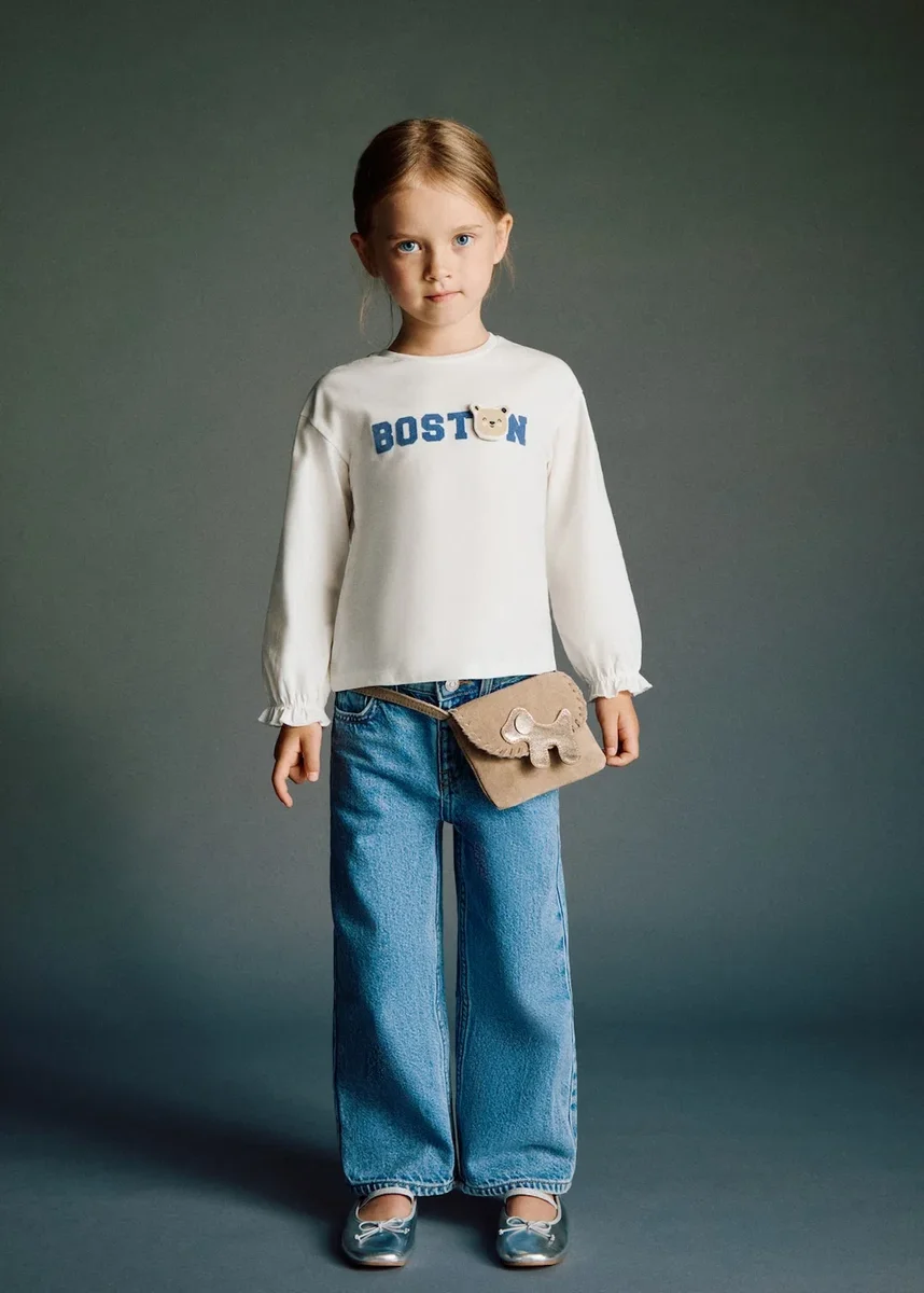 Realizzato in tessuto 100% cotone, questo capo presenta un design dritto con ricamo di orsacchiotto. La scollatura è rotonda e le maniche lunghe hanno polsini elasticizzati e arricciati. Presenta una scritta stampata sul davanti