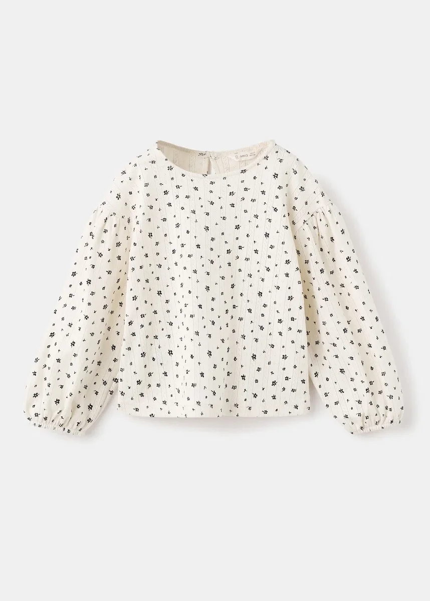 Realizzato in tessuto 100% cotone, questo capo presenta un design dritto con stampa floreale e dettagli a costine. Le maniche a sbuffo e i polsini elasticizzati offrono comfort, mentre la chiusura con bottoni sul retro assicura una vestibilità perfetta.