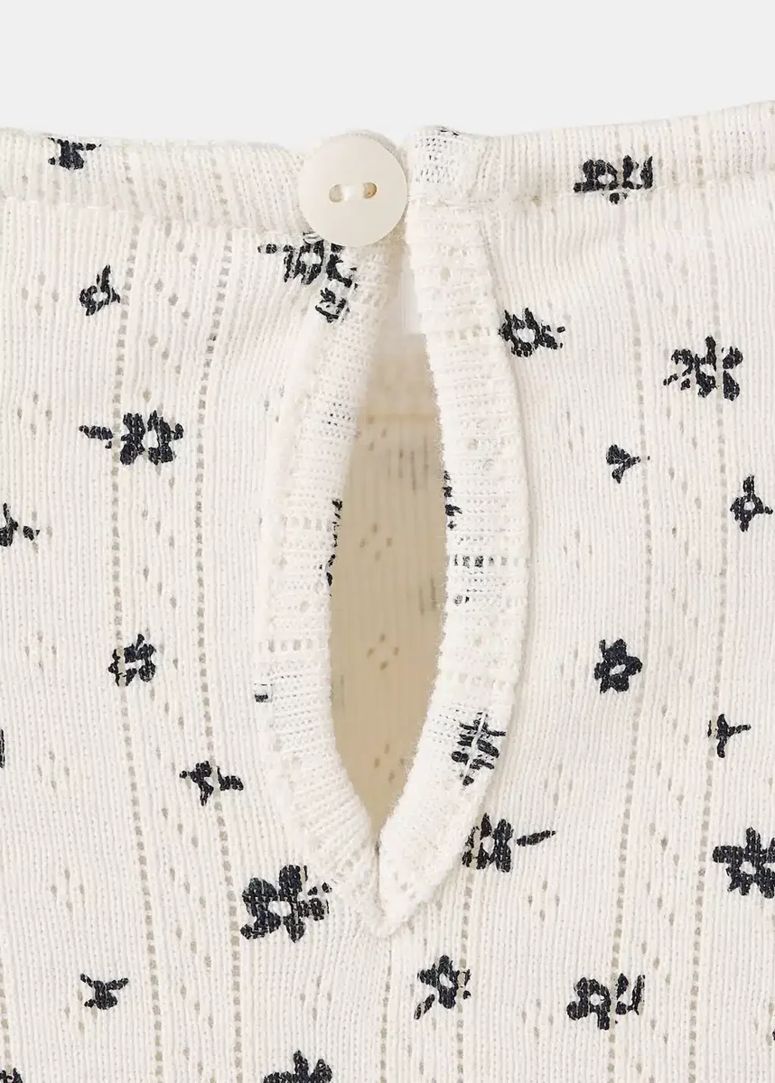 Realizzato in tessuto 100% cotone, questo capo presenta un design dritto con stampa floreale e dettagli a costine. Le maniche a sbuffo e i polsini elasticizzati garantiscono comfort, mentre la chiusura con bottoni sul retro assicura una vestibilità perfetta.