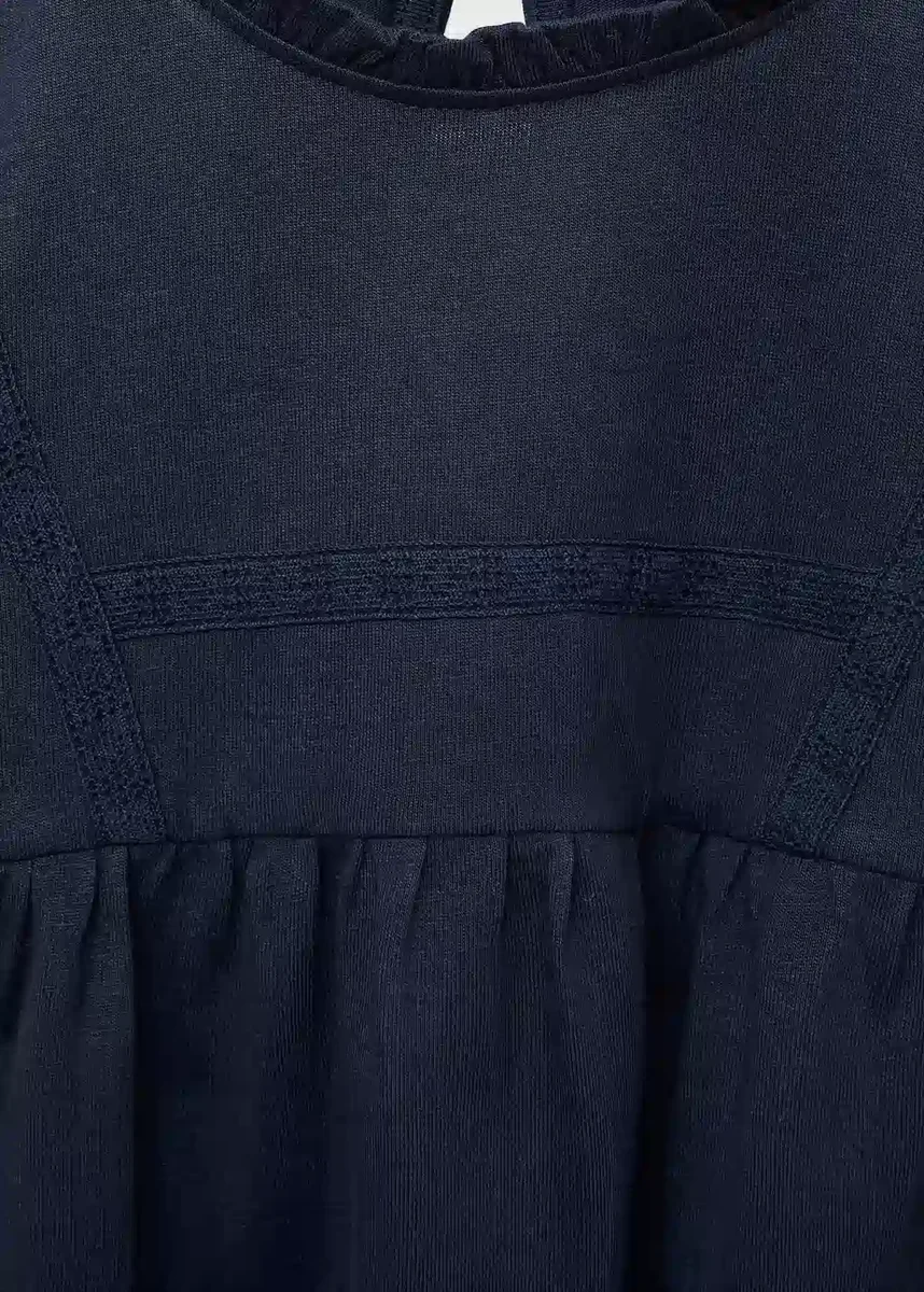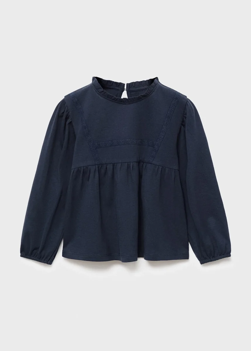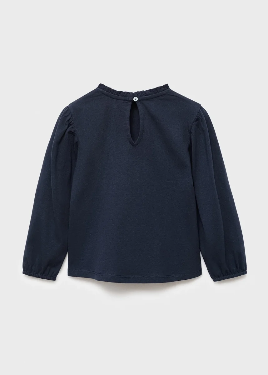 Realizzato in tessuto 100% cotone, questo capo presenta un taglio dritto con scollo rotondo arricciato. Le maniche lunghe hanno polsini elasticizzati e chiusura sul retro. Dettaglio arricciato sull’orlo e ricamo sul davanti.