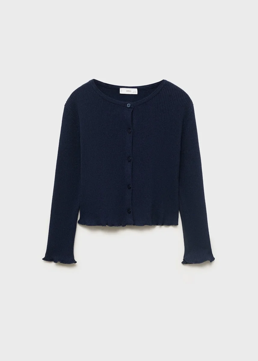 Tessuto in cotone. Tessuto a maglia. Design a costine. Design dritto. Collo rotondo. Maniche lunghe. Chiusura con bottoni sul davanti. Total look.