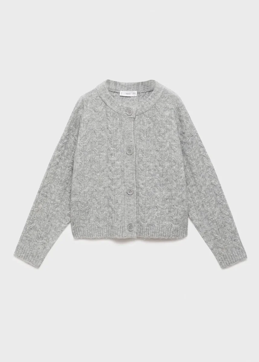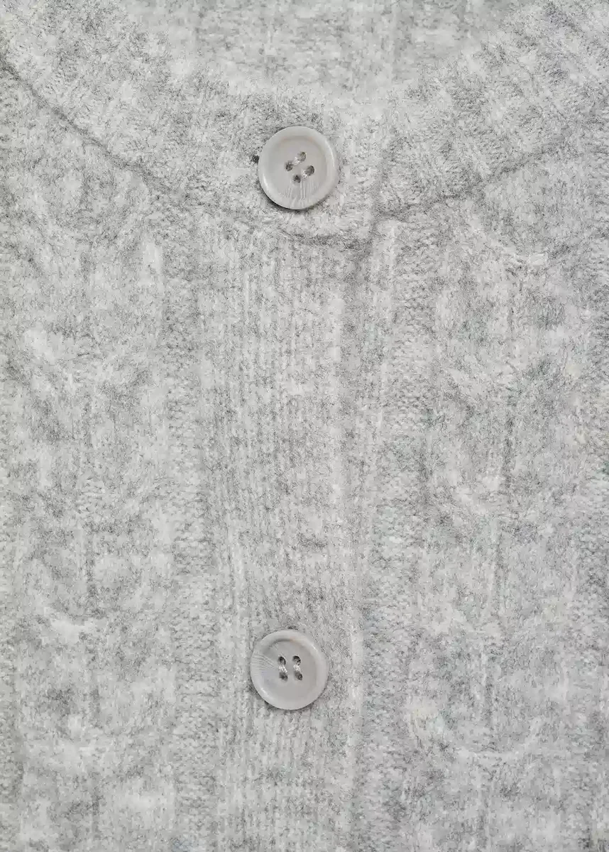 Tessuto a maglia. Design dritto. Chiusura frontale con bottoni. Girocollo. Maniche lunghe. Collo, polsini e orlo a costine.
