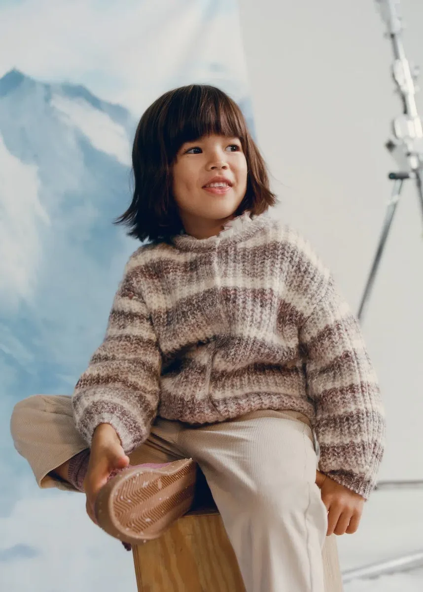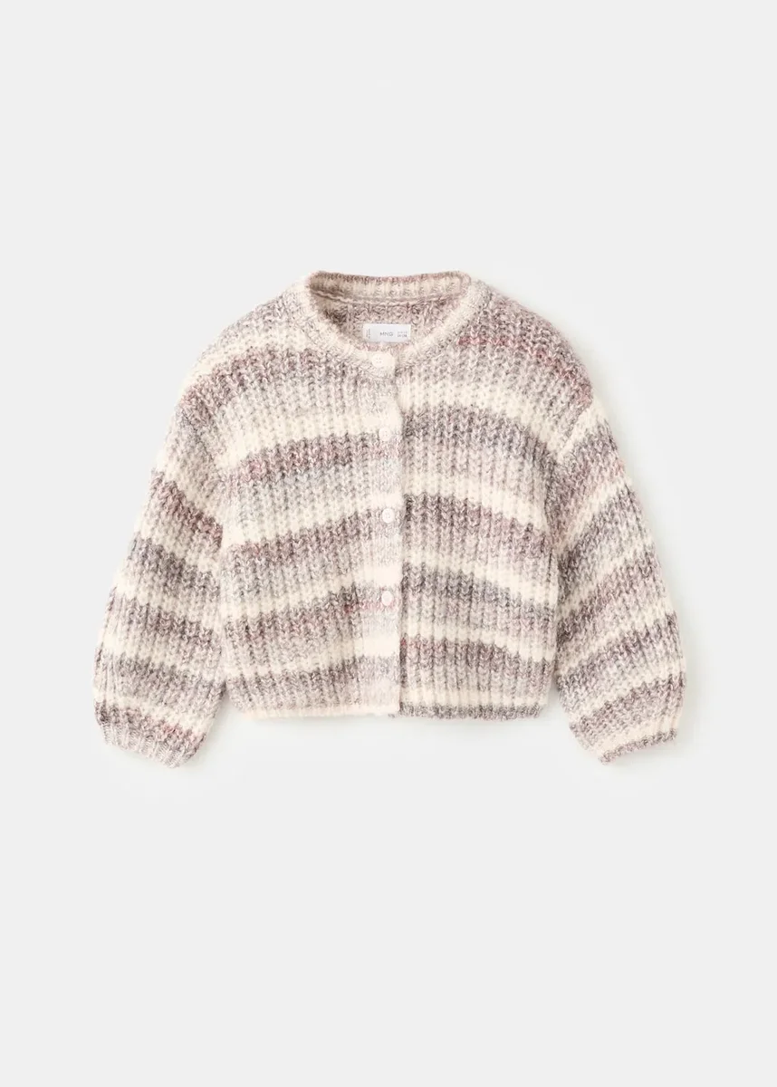 Tessuto a maglia. Jacquard screziato. Design dritto. Girocollo. Chiusura frontale con bottoni. Collo, polsini e orlo a costine. Collezione Natale.