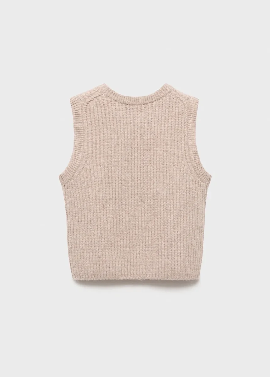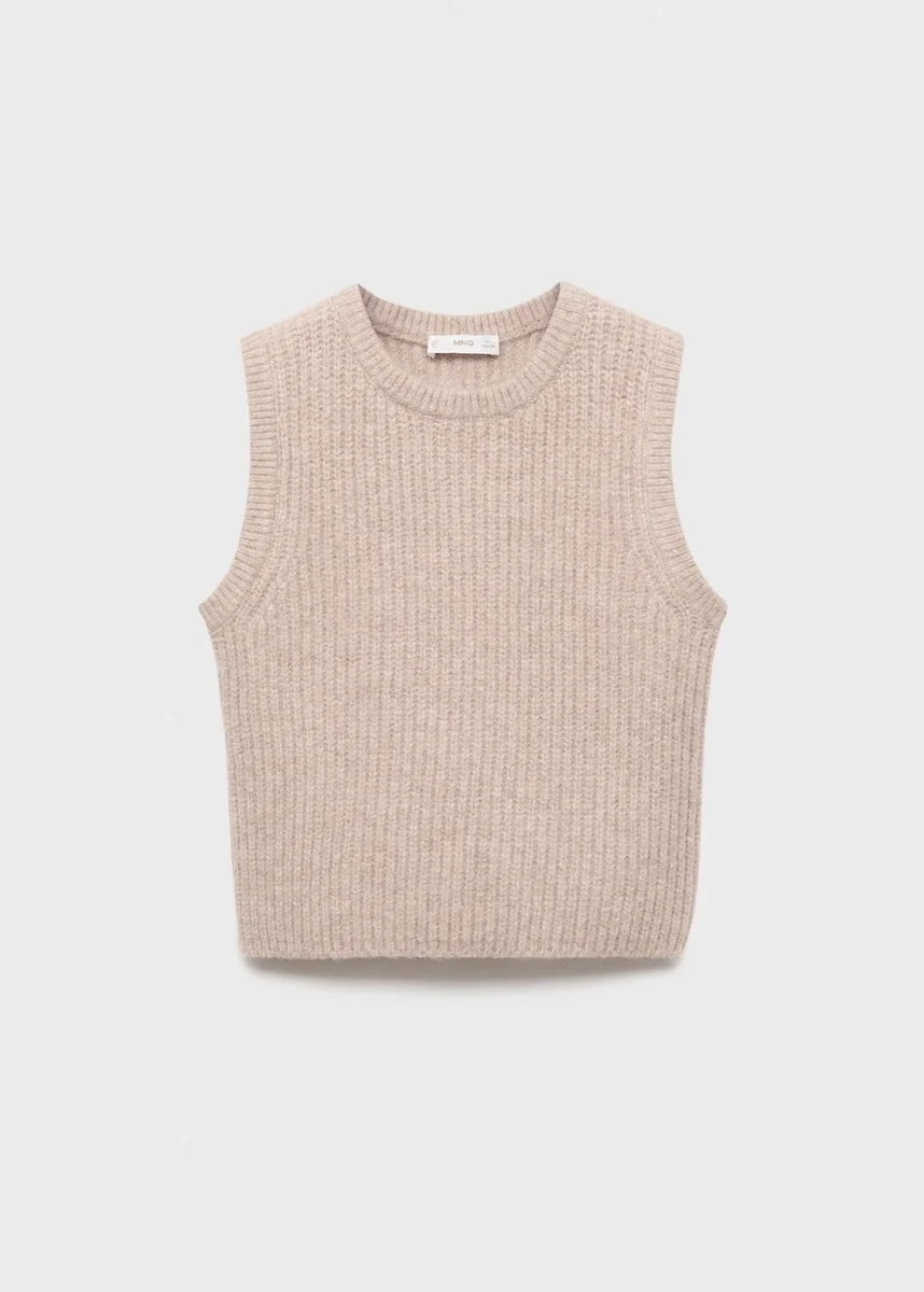 Tessuto a costine. Tessuto lavorato a maglia. Design dritto. Girocollo. Senza maniche.