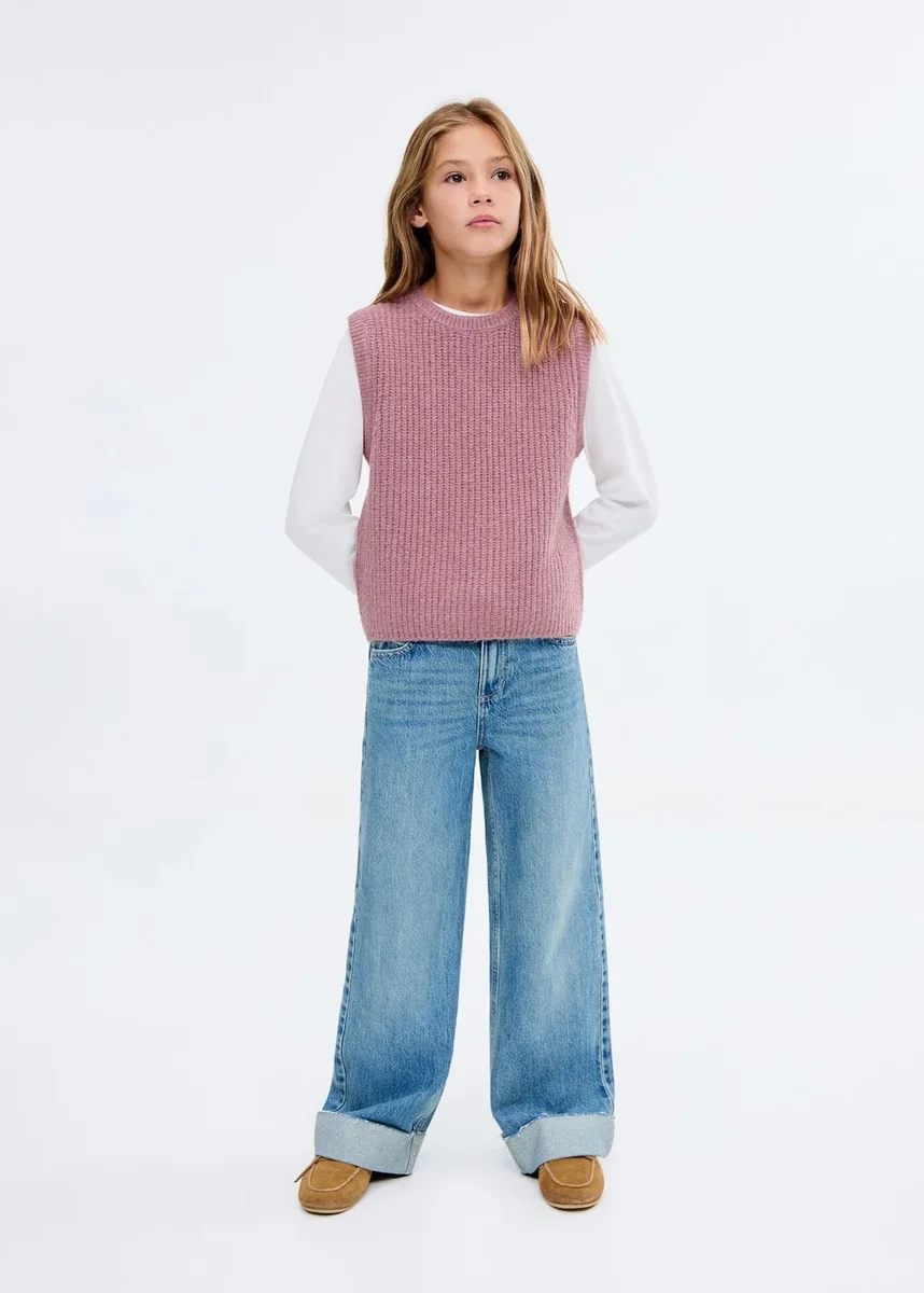 Tessuto a costine. Tessuto lavorato a maglia. Design dritto. Girocollo. Senza maniche