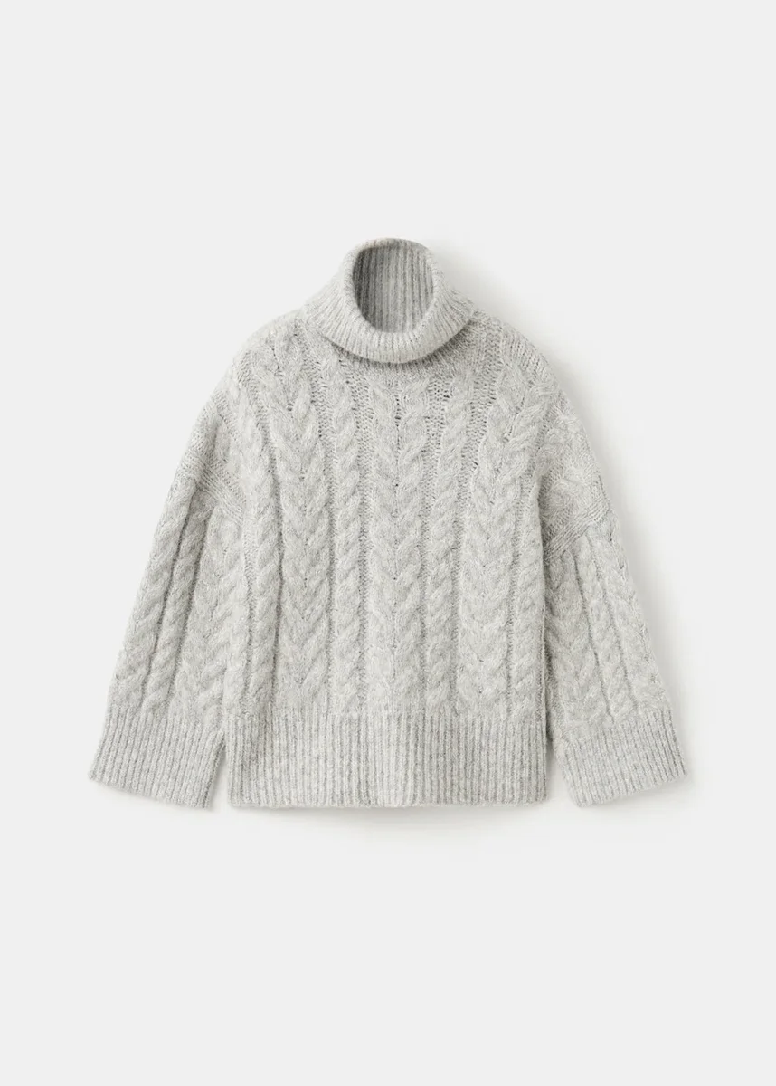 Tessuto a maglia. Maglia intrecciata. Tessuto lurex. Design lucido. Collo alto. Maniche lunghe. Collo, polsini e orlo a costine.p>
