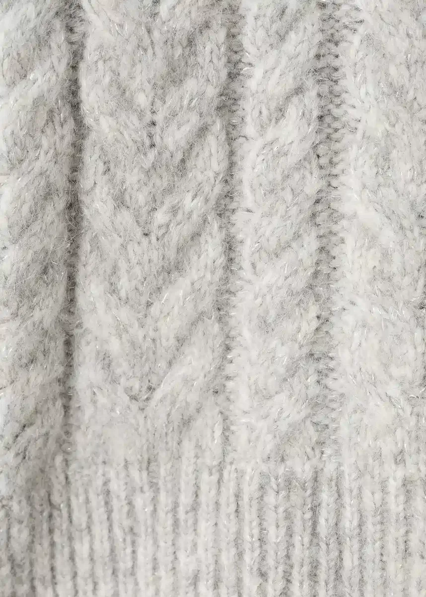 Tessuto a maglia. Maglia intrecciata. Tessuto lurex. Design lucido. Collo alto. Maniche lunghe. Collo, polsini e orlo a costine