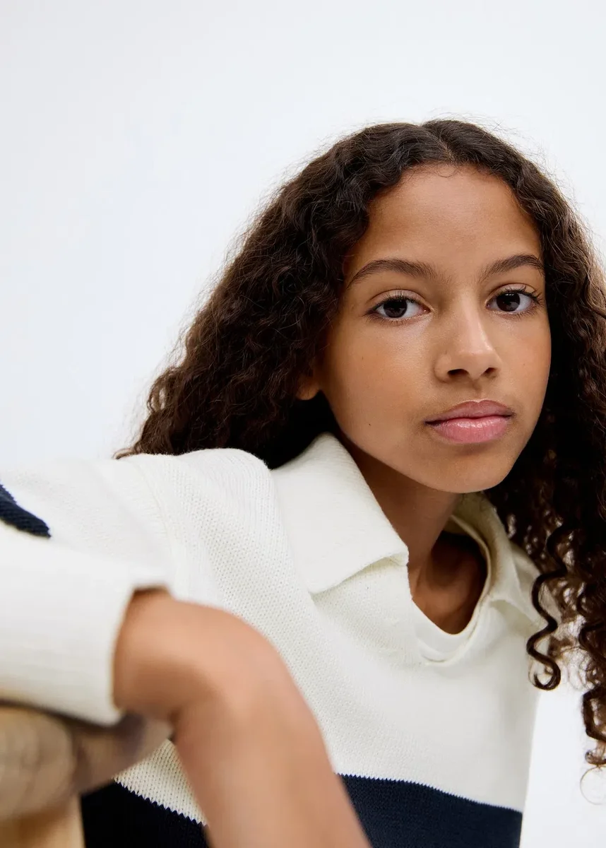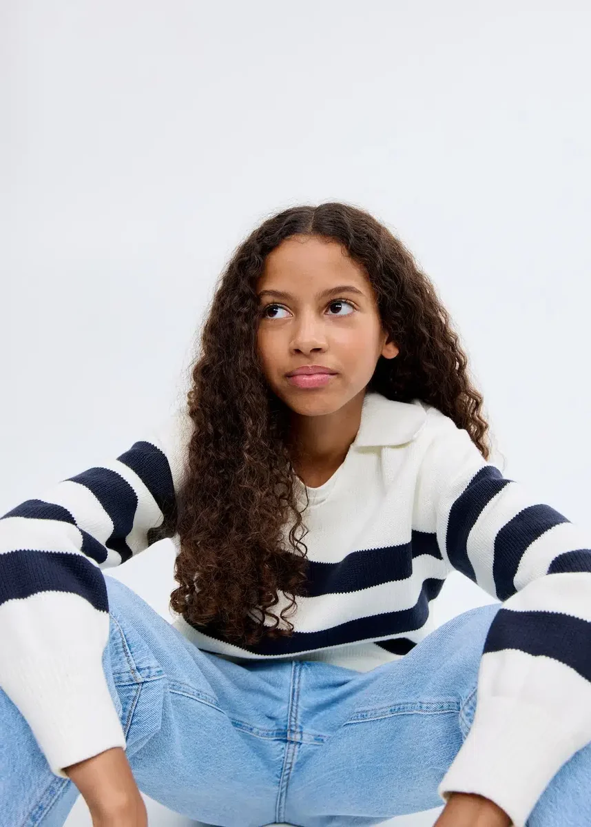 Tessuto a maglia. Tessuto a righe. Modello dritto. Collo polo. Maniche lunghe. Collo, polsini e orlo a costine