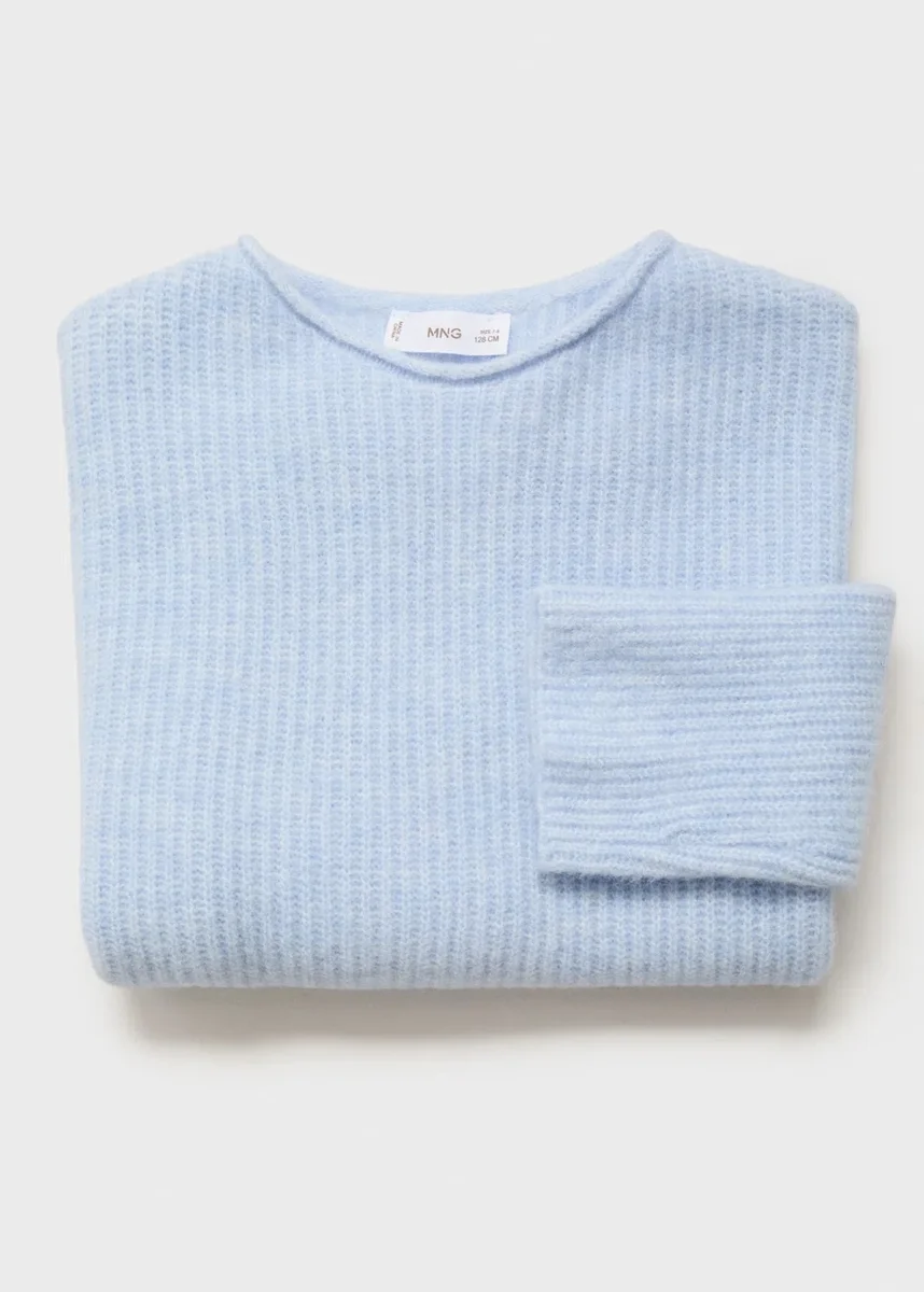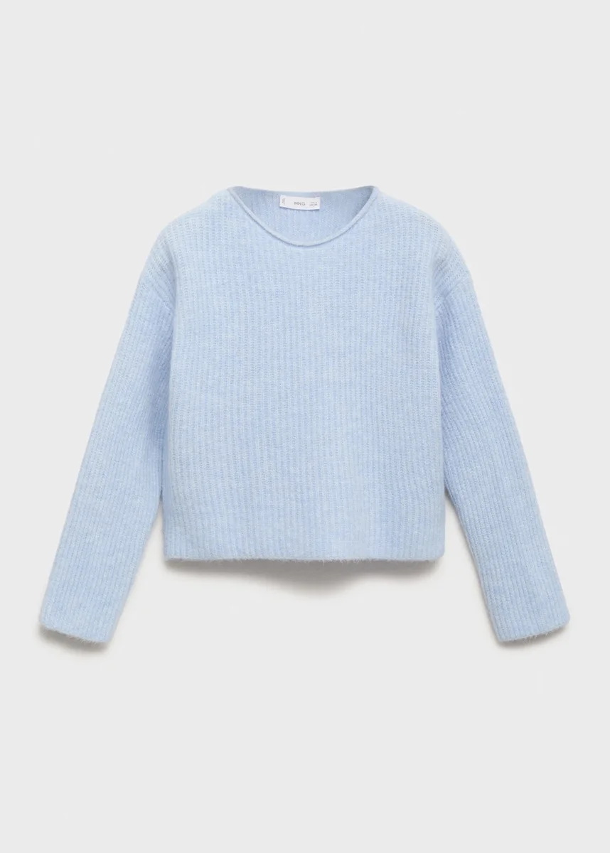Tessuto a maglia. Tessuto a costine. Design dritto. Design semplice. Girocollo con finitura a costine. Maniche lunghe.