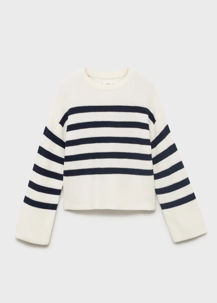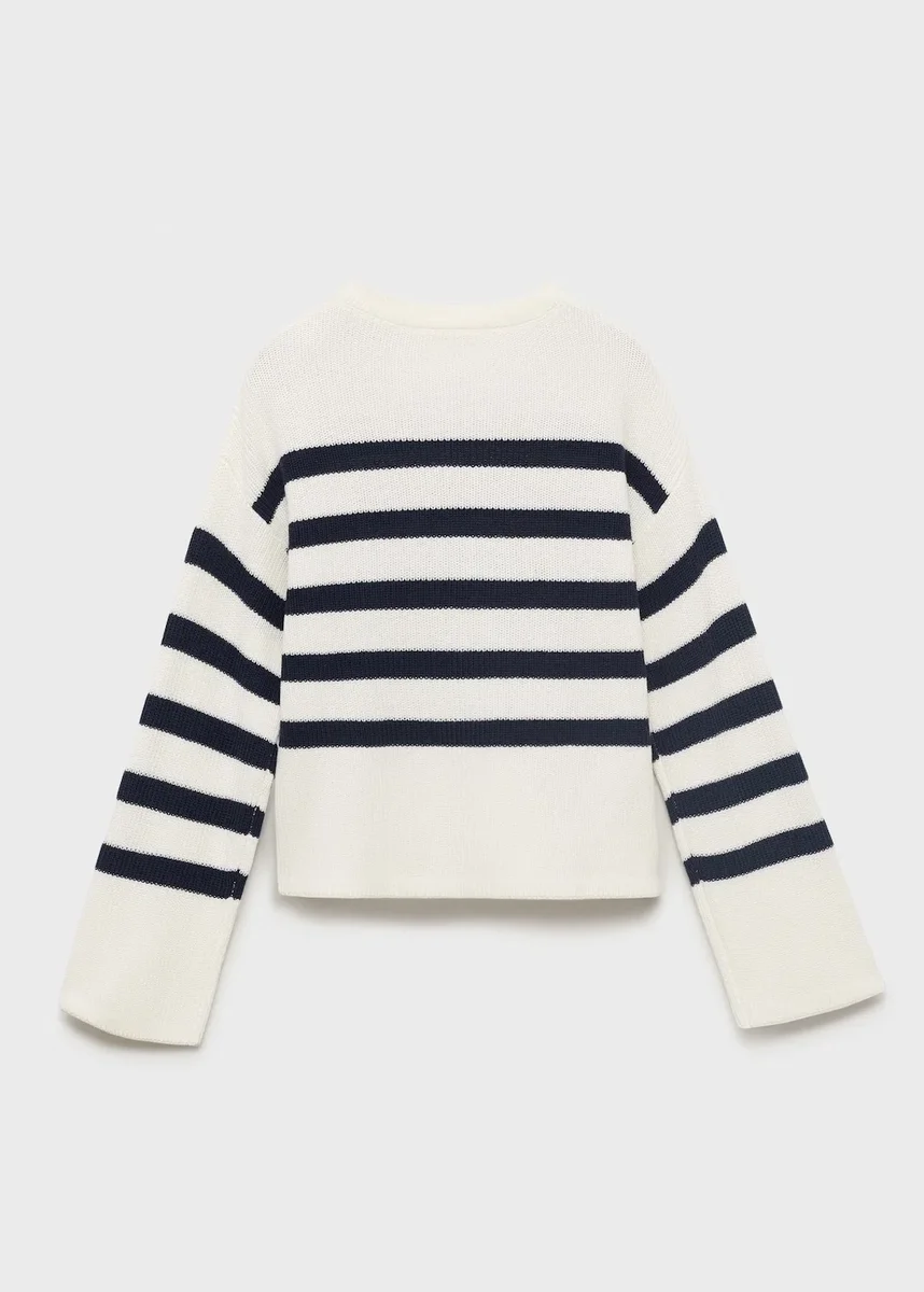 Tessuto 100% cotone. Tessuto a maglia. Design a righe. Design dritto. Girocollo. Maniche lunghe.
