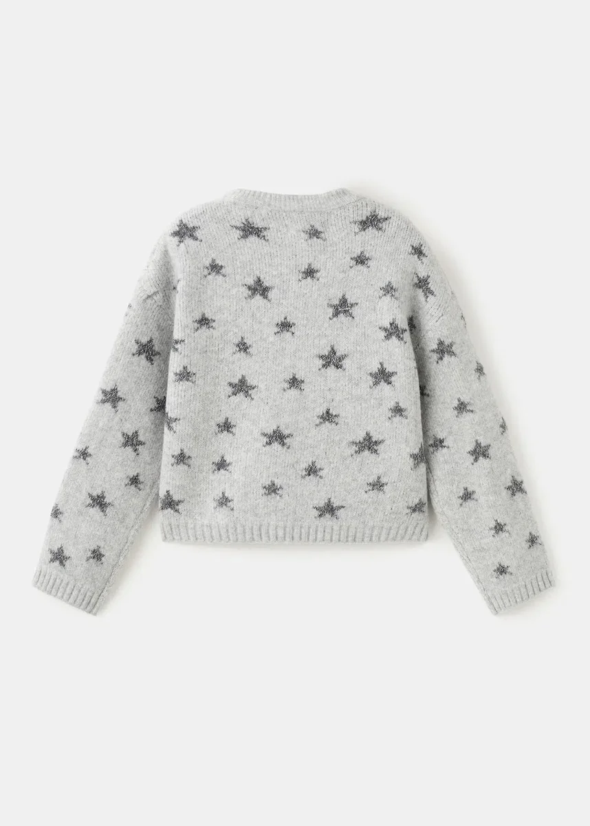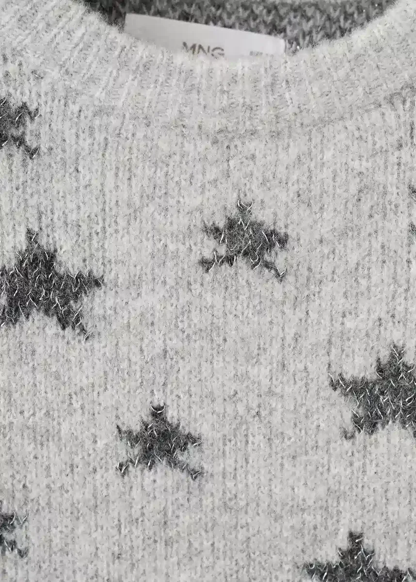 Maglia. Tessuto lurex. Design lucido. Design a stelle. Girocollo. Maniche lunghe. Collo, polsini e orlo a costine.