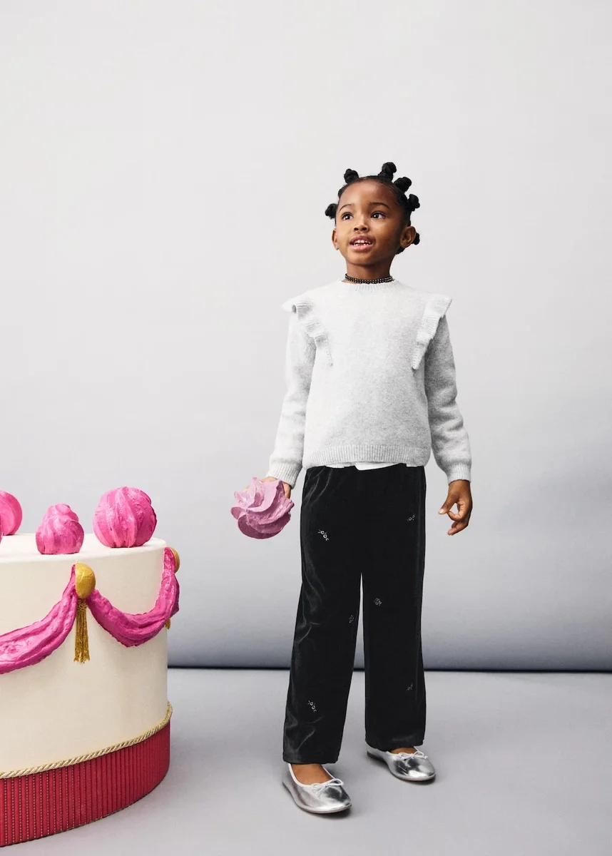 Tessuto a maglia. Tessuto lurex. Modello dritto. Girocollo. Maniche lunghe. Dettagli con volant sulle spalle. Finiture a costine. Chiusura con bottoni sul retro. Collezione Party. Collezione Natale. Black Friday.