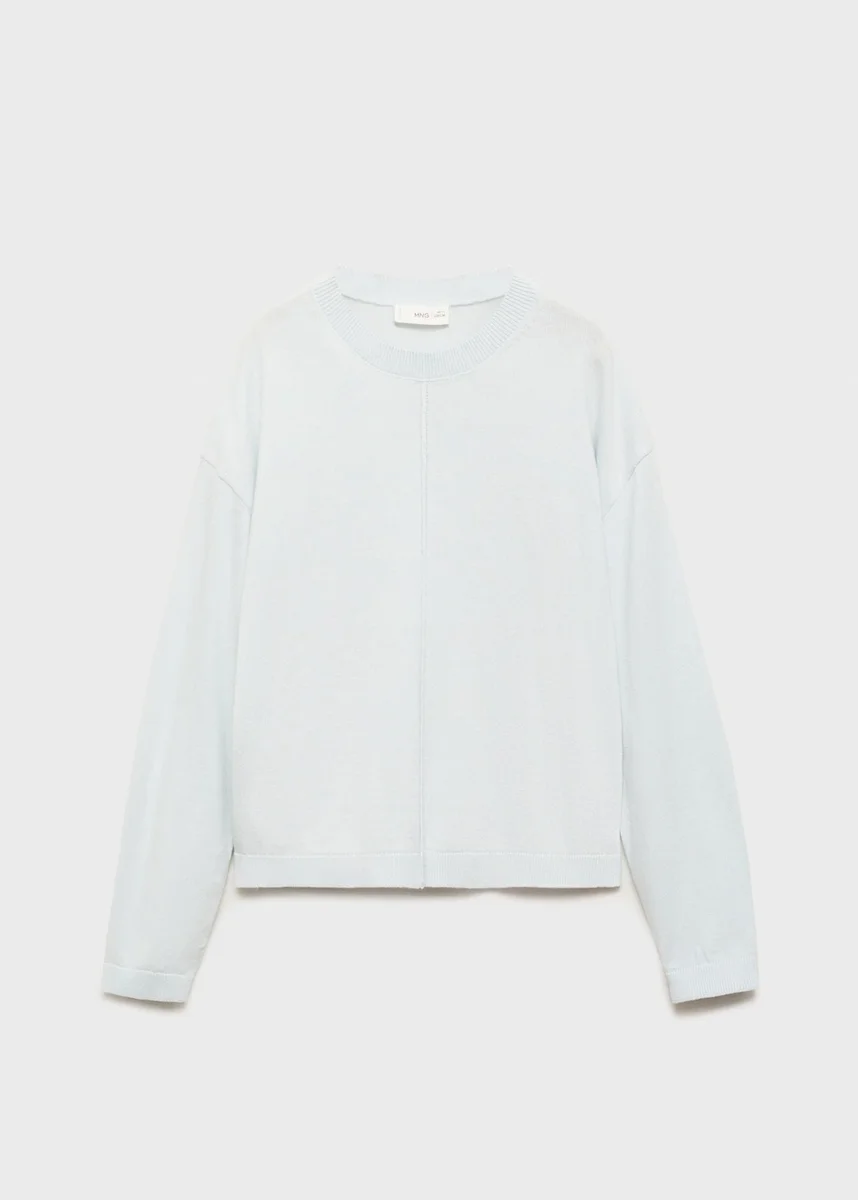 Tessuto 100% cotone. Tessuto a maglia. Design dritto. Girocollo. Maniche lunghe. Collo, polsini e orlo a costine. Dettagli cuciti sul davanti.