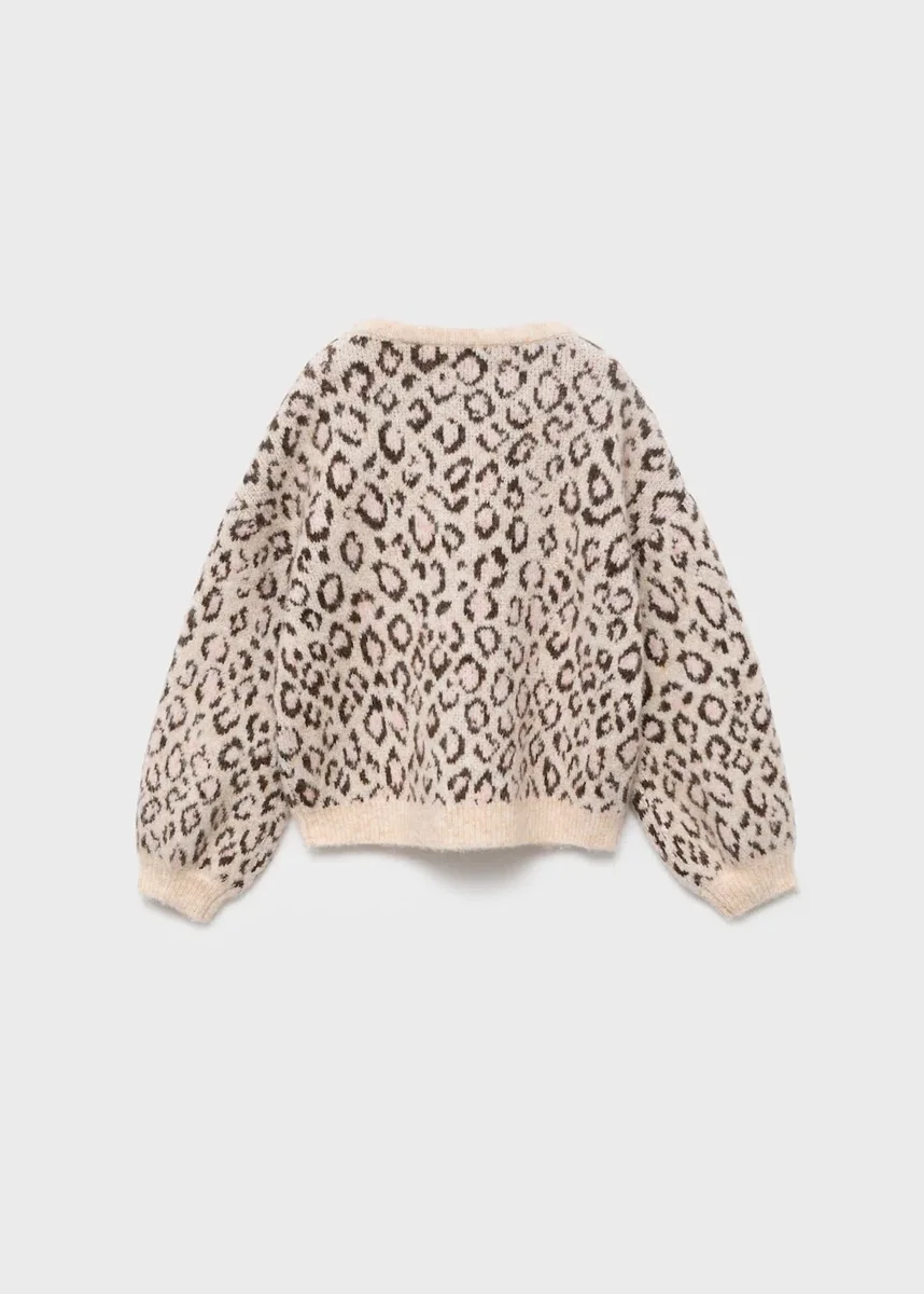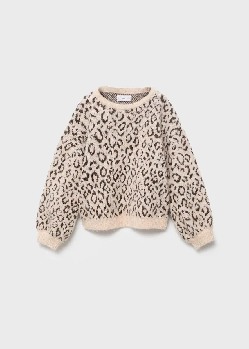 Tessuto lavorato a maglia. Tessuto in lana. Stampa leopardata. Girocollo. Maniche lunghe. Collo, polsini e orlo a contrasto. Cappello abbinato disponibile.