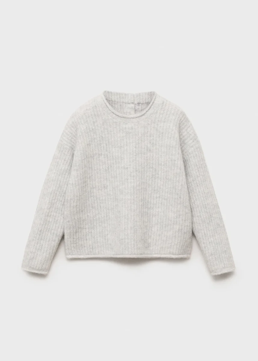 Tessuto lavorato a maglia. Design a coste. Design dritto. Collo arrotondato con chiusura a bottoni. Maniche lunghe.