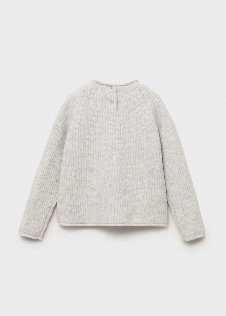 Tessuto lavorato a maglia. Design a coste. Design dritto. Collo rotondo con chiusura a bottoni. Maniche lunghe