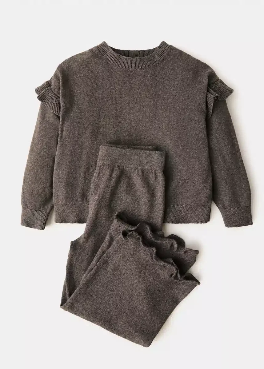 Tessuto 100% cotone. Tessuto lavorato a maglia. Design con volant. Design dritto. Collo rotondo. Maniche lunghe. Volant sulle maniche. Total look.