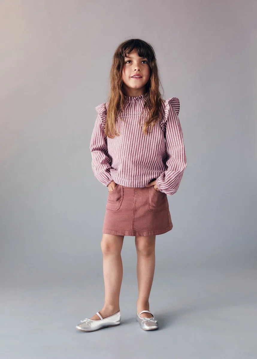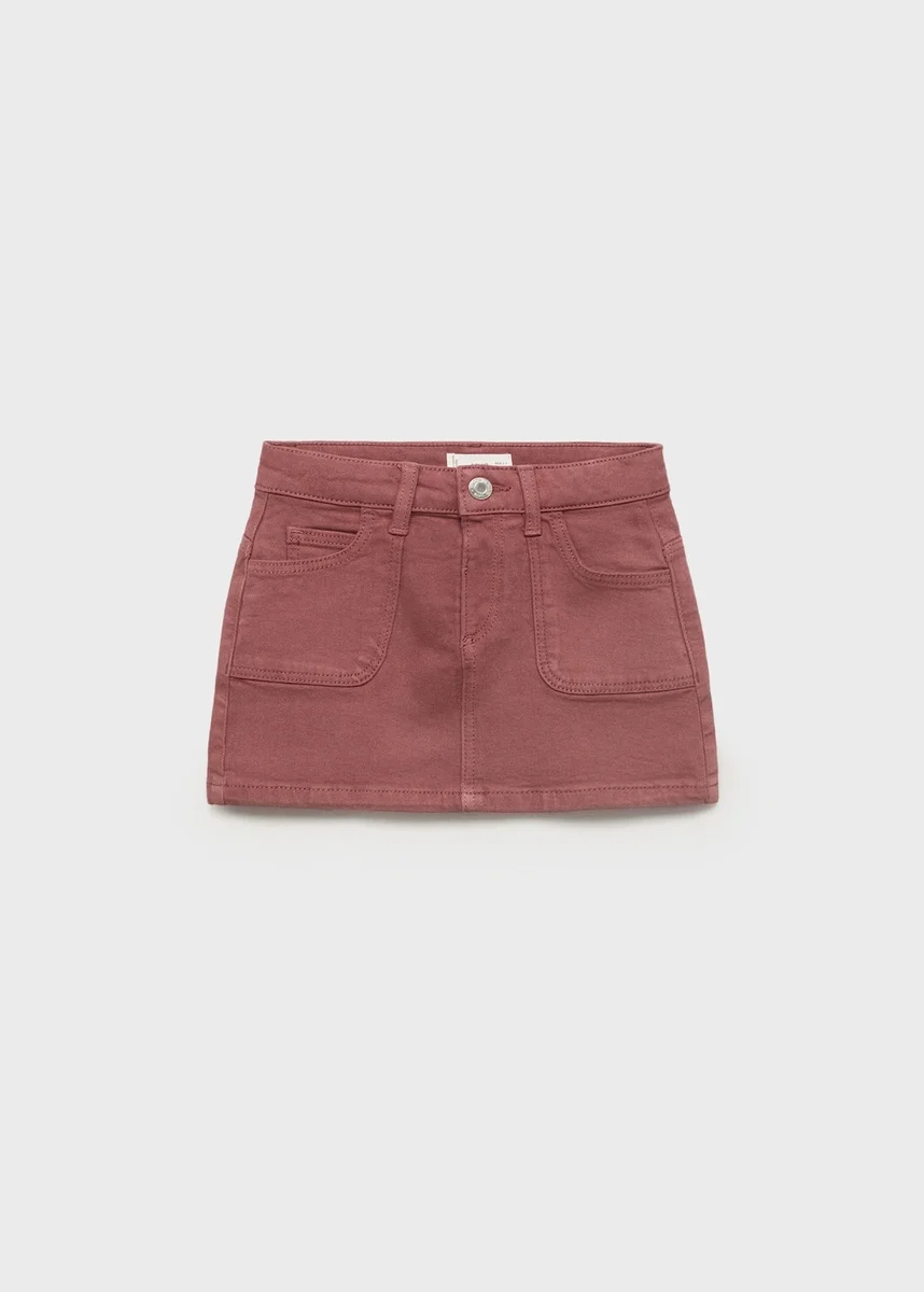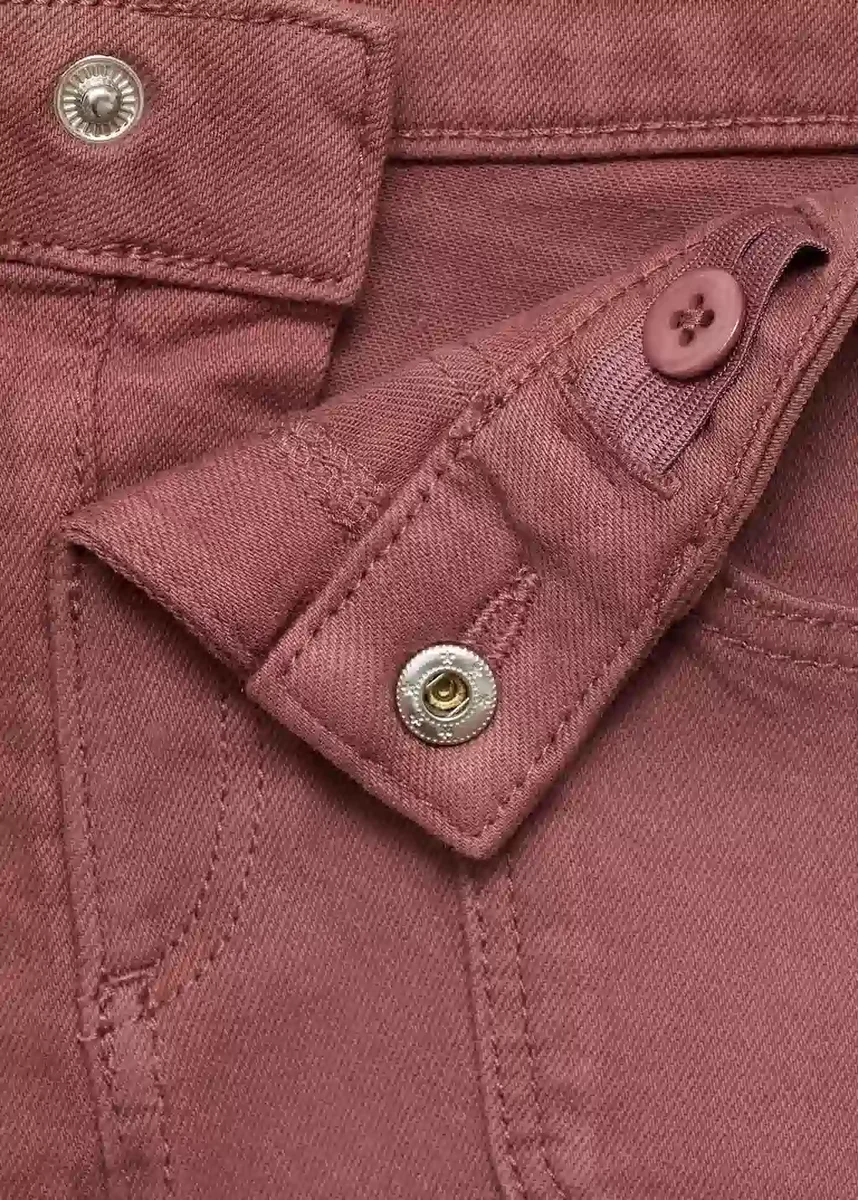 Realizzato in tessuto di cotone stile denim, questo capo presenta un design corto e dritto. Include passanti per cintura, cinque tasche e chiusura con bottoni a pressione per una vestibilità comoda e funzionale