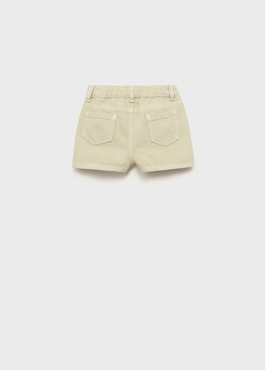 Tessuto 100% cotone. Modello corto. Passanti per cintura. Vita elasticizzata. Cordino in vita. Dettaglio bottone decorativo. Tasche applicate sul retro.