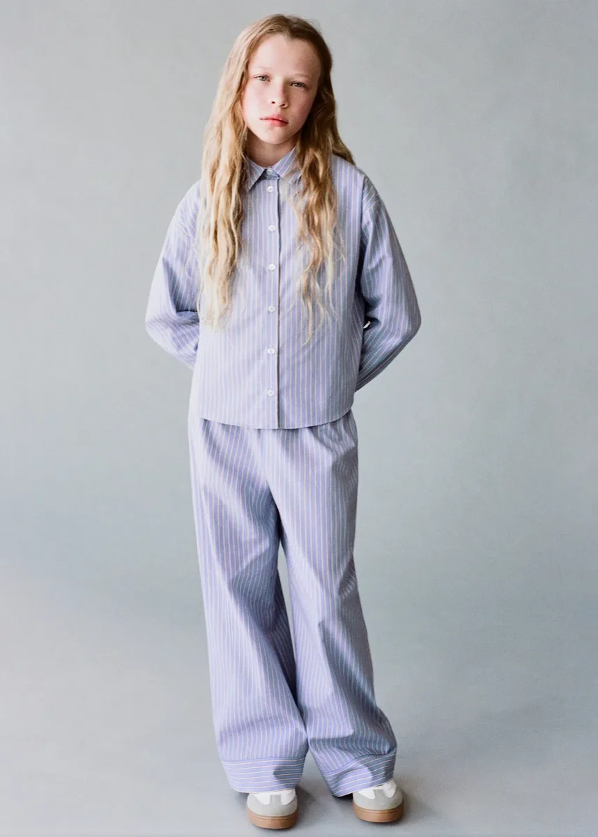 100% cotone. Tessuto a righe. Modello lungo. Elastico in vita. Total look.